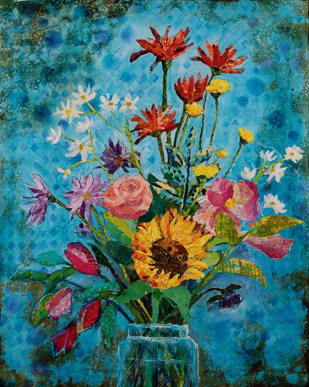 Over the next several years, I immersed myself in workshops and classes, learning to carve out time for art amid a demanding career. My early efforts weren’t polished—my perspective was skewed, my drawing passable, my painting serviceable—but I loved every second of it. Then I discovered mixed media, and everything changed. Mixed media gave me freedom: if something didn’t work, I could collage over it; if the colors clashed, I could scrape them away. It was art without rules—just endless opportunities to explore.