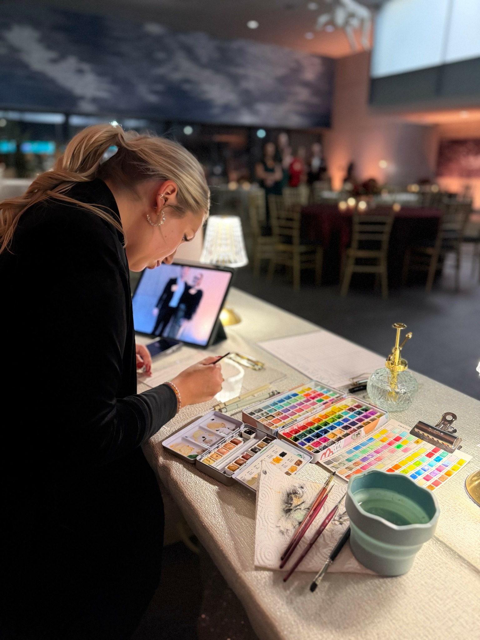 Walking away from something stable to pursue a creative path isn’t always the “safe” choice, and there were definitely moments where I questioned it. But I also knew that I had already started building something of my own, through my watercolor work, commissions, teaching in creative spaces, and eventually live event painting.