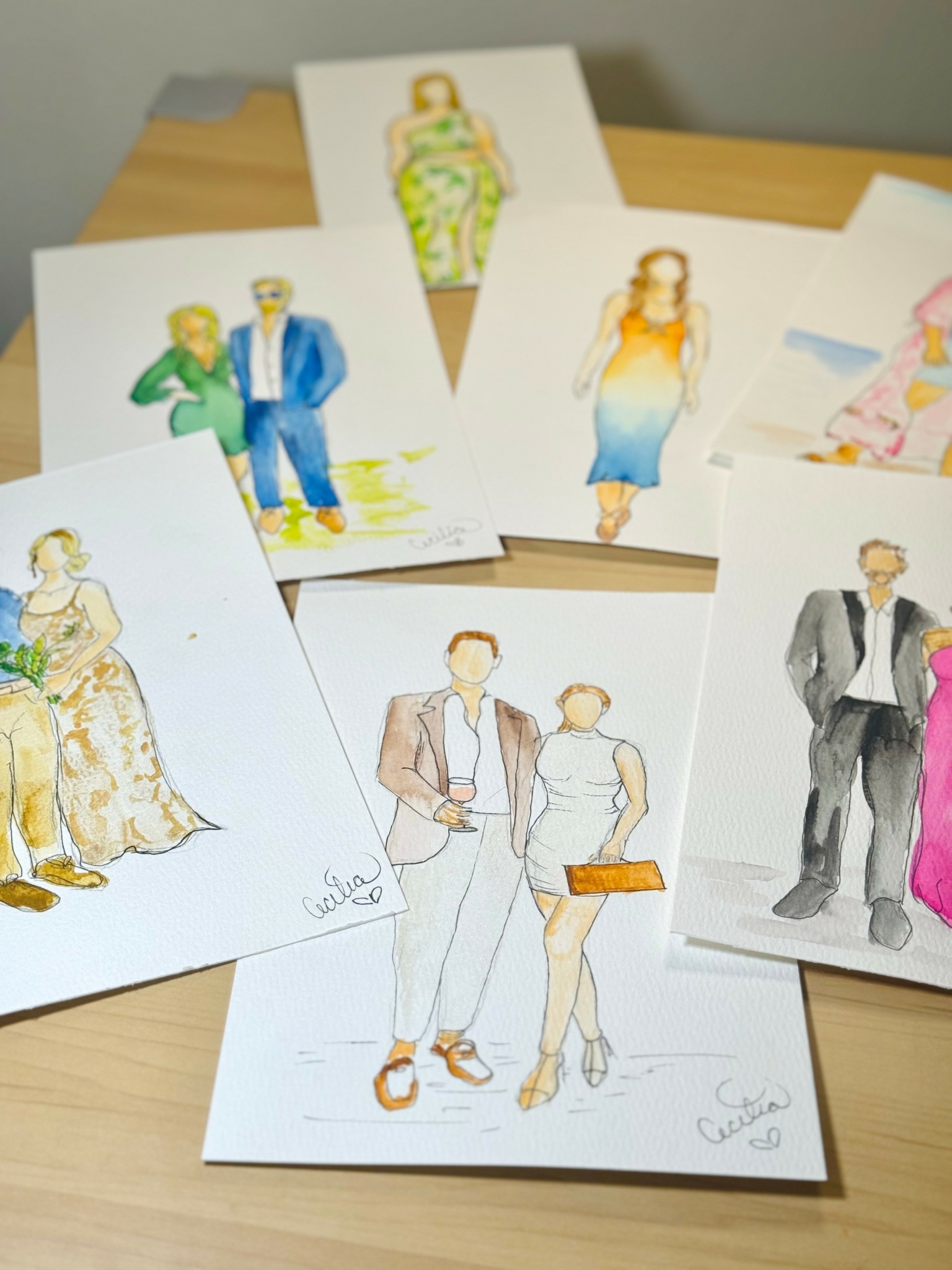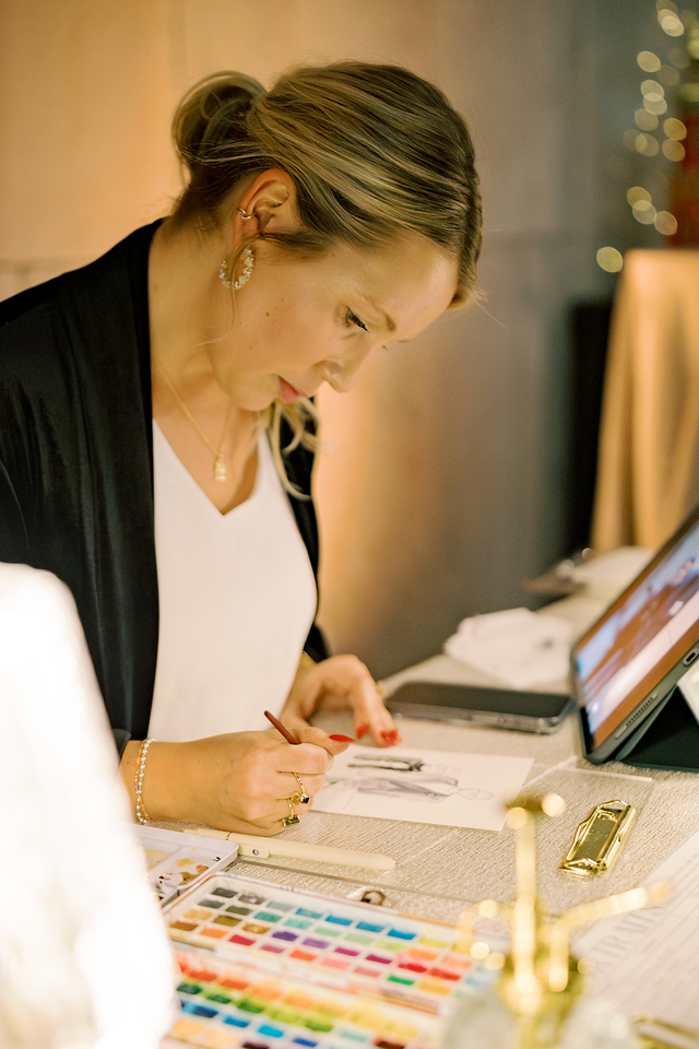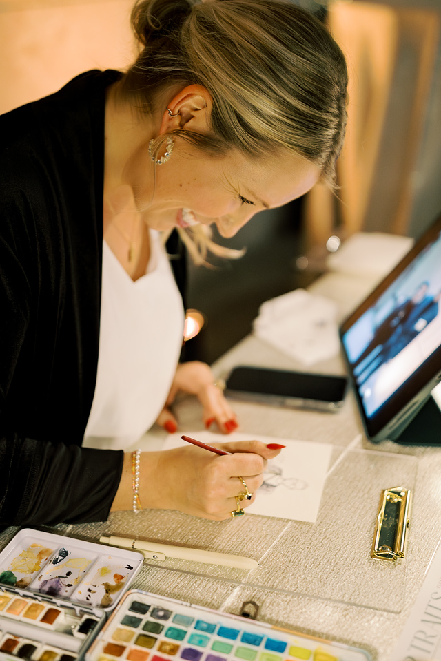 I offer this experience at weddings, corporate events, and private gatherings, where I create quick, sketch-style watercolor portraits of guests on-site. It becomes more than just a service, it’s interactive, it’s engaging, and it gives guests something truly unique to take home. In spaces where so much is carefully curated, this adds a personal, human element that people don’t always expect.