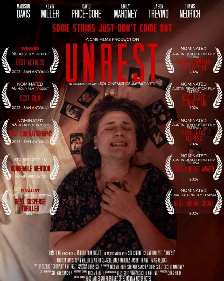 Back in 2014, I decided to take a leap and enter the San Antonio 48 Hour Film Project. Filmmaking had always fascinated me, and I knew it was something I had to try. My first film was far from perfect, but it sparked a fire within me when I saw another team’s entry—a small group that created a Hollywood-quality film that left everyone in awe. I thought, “If they can do it, so can I.” From that moment on, I was determined to reach their level of excellence. For the past ten years, amidst balancing family and work, I’ve dedicated my spare time to mastering every aspect of filmmaking. I immersed myself in learning writing, cinematography, editing, acting, sound design, and directing. I took classes, collaborated with other filmmakers, and absorbed every bit of knowledge I could. Today, I proudly look back at over 20 short films, with 8 wins and 16 nominations on IMDB. I’m currently working on two new short films and on a writing team for an urban legends feature film called “Periculum – San Antonio.” I am also currently working with a filmmaker named Michael Roth on his short film, “86’d,” we are aiming to enter the film into prestigious festivals like Sundance and SXSW. Filmmaking has truly changed my life. My brand, CM9 Films, means the world to me and with the success I’ve had recently I’ve decided to start my own production company, Maverick Lens Production LLC. My goal is to bring a unique vision to every project, always striving for something fresh and new. My journey, which started back in 2014, has come full circle, and now I get to share everything I’ve learned with future collaborators and projects. If I can do it, you can too.