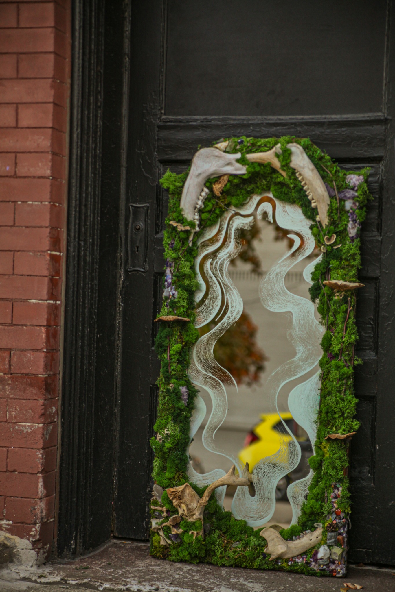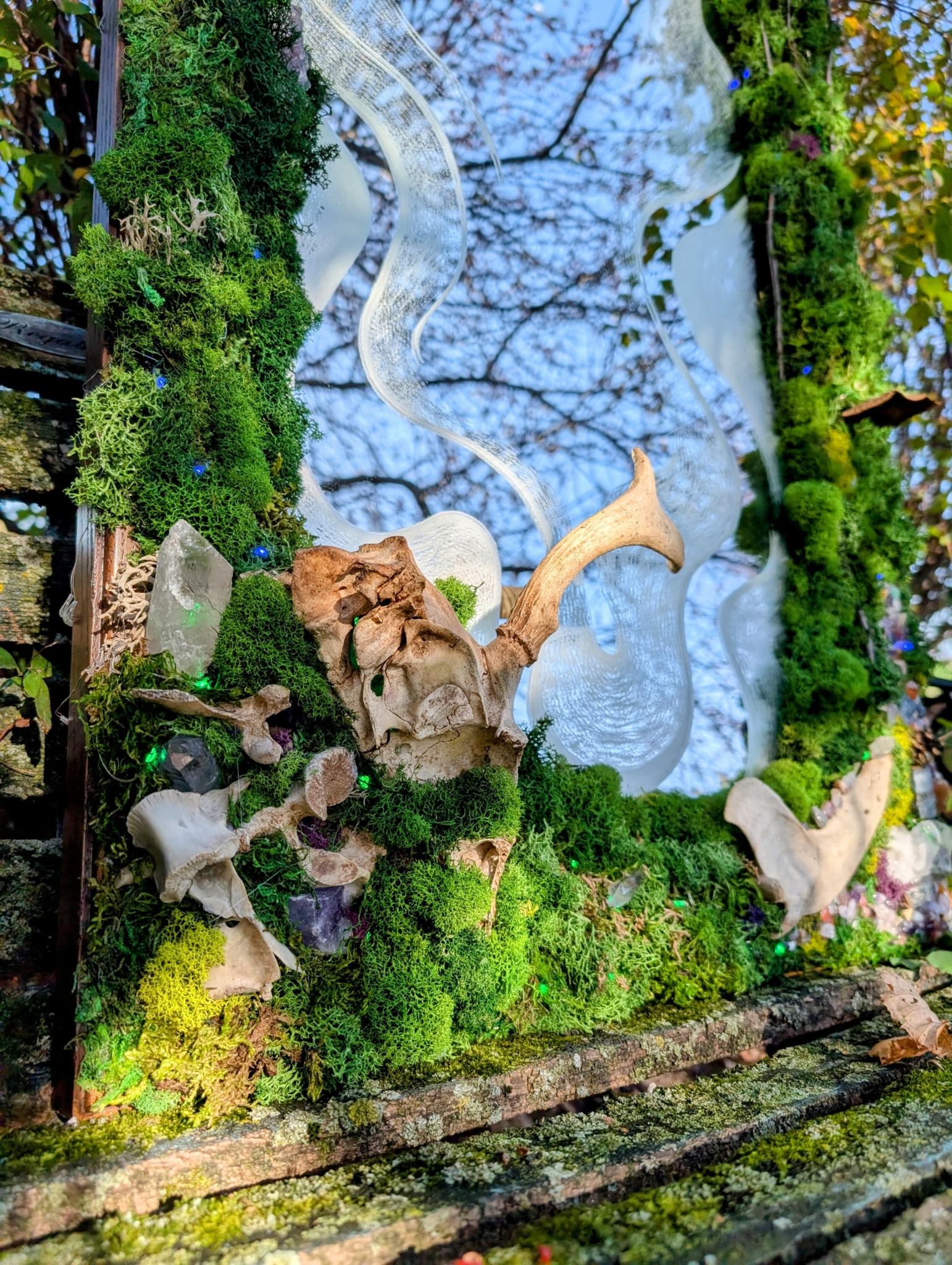 The most meaningful project I’ve worked on is actually the work I’m creating right now. I’ve recently been focusing on letting go of my attachment to the outcome and how my work will be perceived, as that is truly out of our control anyways. This has allowed me to get excited, play, and experiment within my art. What I’m working on now is a project centered around portals. I’ve been taking old objects, specifically mirrors, and turning them into these mossy forest portals that light up. I engrave the mirror itself, so that the etching lasts forever, and then incorporate a variety of natural elements. A lot of the natural elements that I incorporate such as sticks, stones, bones, acorns, etc. are found by me, and the process is incredibly intentional.