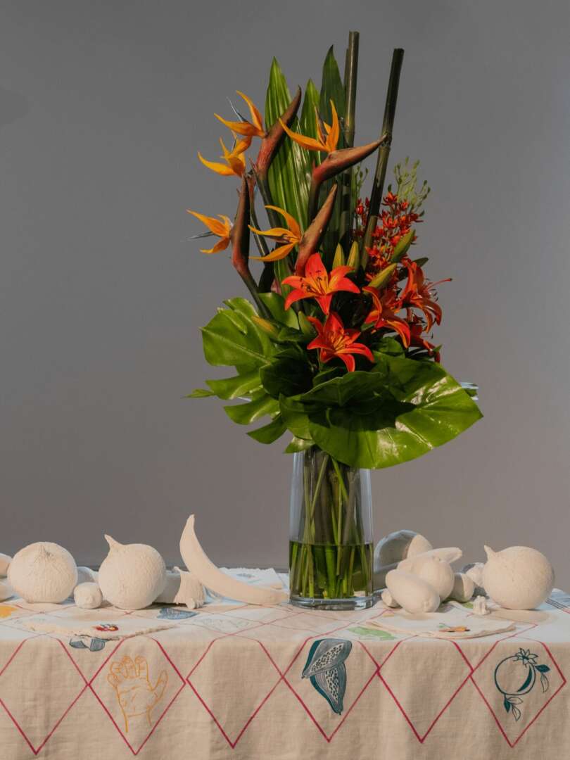 I am Jamaican-Canadian, and spent much of my childhood travelling to spend time with my paternal family in Jamaica. I credit those trips with sowing the seeds for how I understand my art practice now. A lot of my work is rooted in my experience as a bi-racial Black queer woman who has always felt torn between two places. A sense of yearning and loss is often present in my work, but it is almost always contrasted with a deep sense of joy and playfulness. It’s important to me never to forget the humour in life when I’m thinking through the ideas I want to work with; as a result, my work often ends up full of bright colours and can be interactive in an amusing way for the viewer.