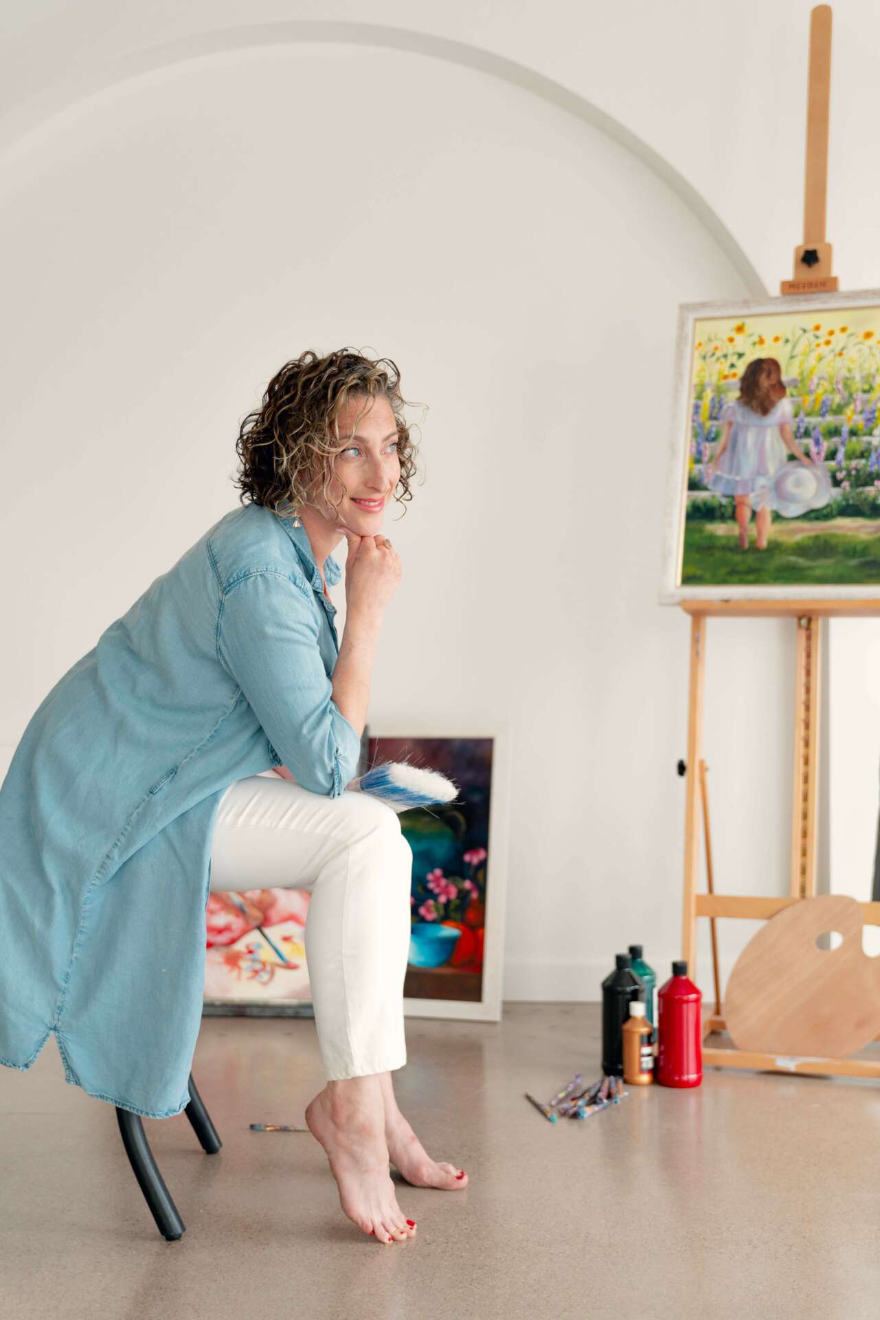 I am a mom of 4, and wife to a wonderfully dedicated husband, who supports me in all my creative endeavors. Growing up, I’ve always leaned towards creativity and my parents have always tuned into that. Before I started my business, I was an elementary school teacher for 10 years. In 2015, when my youngest at the time was a year old, I stopped teaching to be more present at home with him and my 2 older school age children. Within a few months, my creative itch to do something turned into a small Paint Party business. It allowed me the time to be home with my son, while also having the ability to teach, be creative and earn a living. It’s been a really fun adventure and I’m so proud of what my business has become. I’ve straddled the work/life balance and continuously try my best to always remain centered with it. My hope is that my kids see and feel this dual possibility of me having the autonomy that comes with running my own business, while also being there for them. In recent years, I starting working in the event planning & floral space, and this journey is just beginning. I’m excited to see where it will take me.