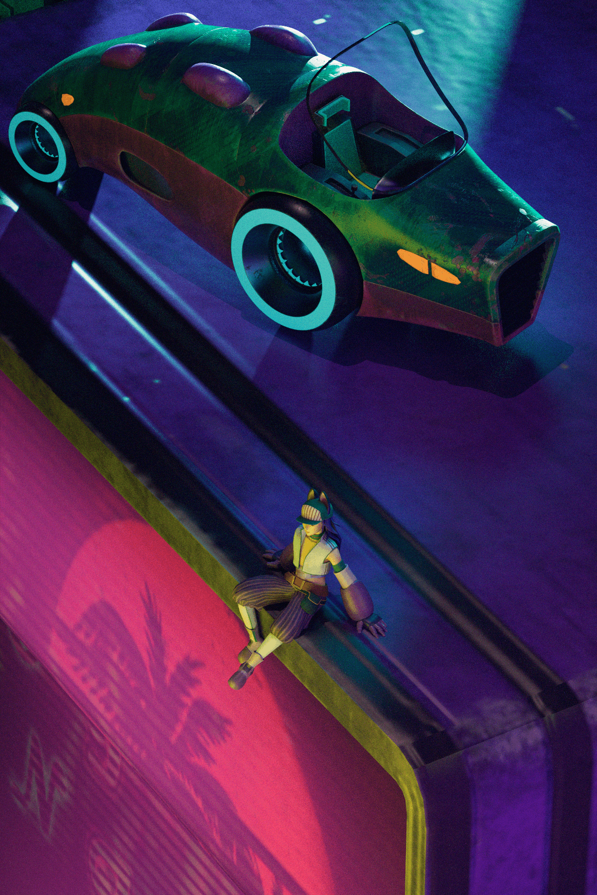 Cyberpunk Image 5: Car and Character by Charlie Luo, environment from sketchfab