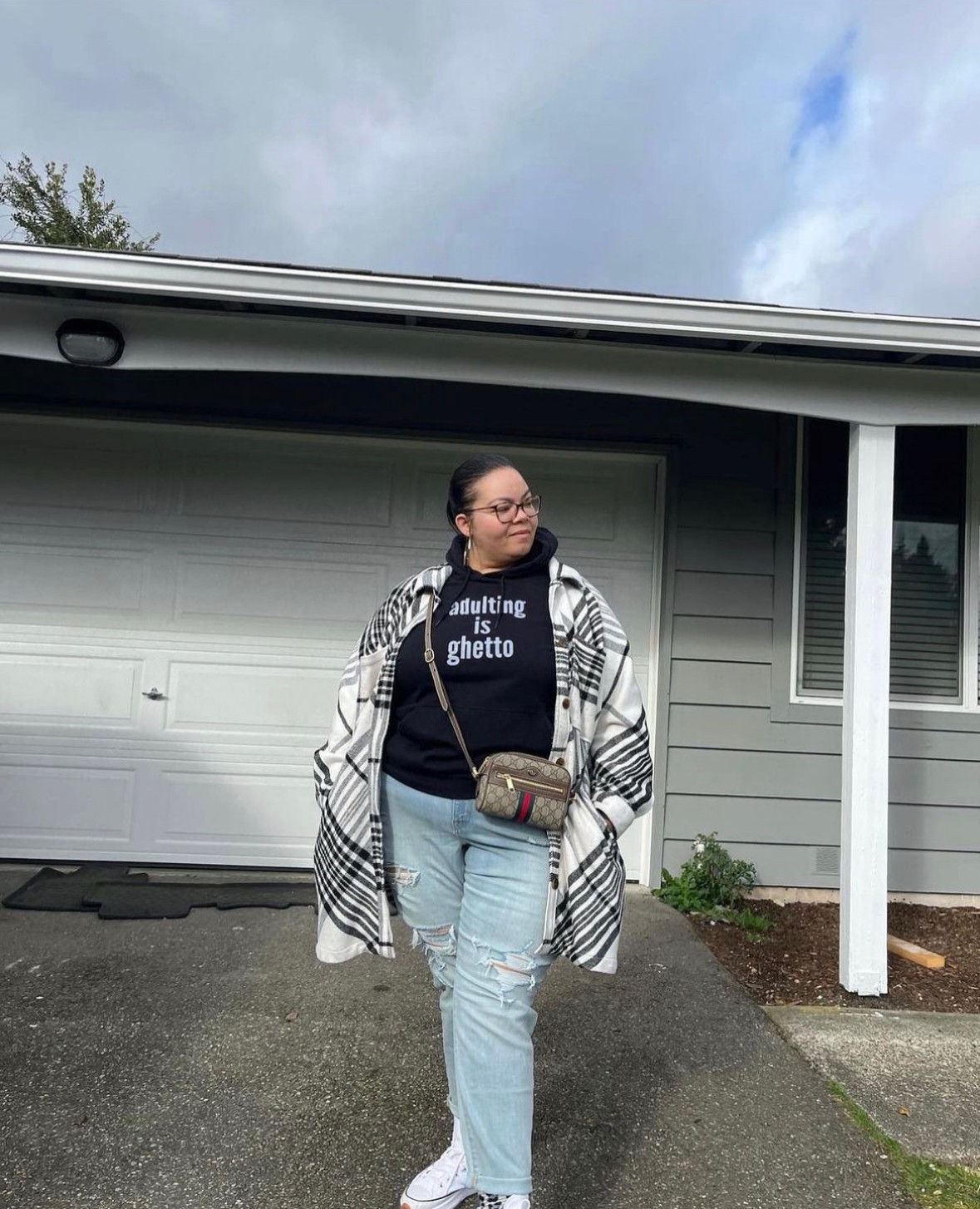 All images, except for image three, featuring the woman wearing the ‘Adulting is Ghetto’ sweatshirt, are the exclusive property of Broke Black Bougie. Broke Black Bougie is the sole creator of this content. The Adulting is Ghetto sweatshirt was posted by the supporter and IG user: @jay_I_boogie.