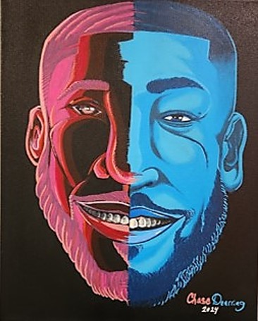I’ve been an artist my whole life! The 1st drawing I can remember had to be when I was 4 years old, I drew all 4 Ninja Turtles. Since then I was always sketching. But, throughout the years it had become just a hobby where I’d occasionally draw t-shirt, logo, and tattoo designs for people/organizations and later getting into painting. It wasn’t until 2022, when my wife was pushing me to get back into my art, that I got back into painting. I recall a specific event where I was at Starters in Southfield and I ran into a childhood friend I knew since we were 6. He was introducing me to some people he had with him. Then he called me out, saying, “Hey, this my boy Chase! He a artist, but don’t want to be an artist”! Then he folded his arms and looked me dead in my face with a smirk on his. I felt like crap, knowing I had a calling and almost ignoring it. Within the same month, one of my friend’s mother told me about the Detroit Fine Arts Breakfast Club, suggesting I start attending. I went for the 1st time on Halloween 2022. What a fresh and humbling experience! I soon made the commitment to myself to attend DFABC every week. I was strongly encouraged by Henry Harper, Harold Bragg (DFABC Co-Founders) and other members to get involved and learn as much as I could. Soon participated in my 1st Art Exhibition in February 2023 (McGee: Urban Synthesis”) at Design Studio 6 where both of my pieces sold! It was then that I could see, I’m meant to do this professionally. From there, I actively pursued Calls to Artists and now, here I am! An Official aRTist!