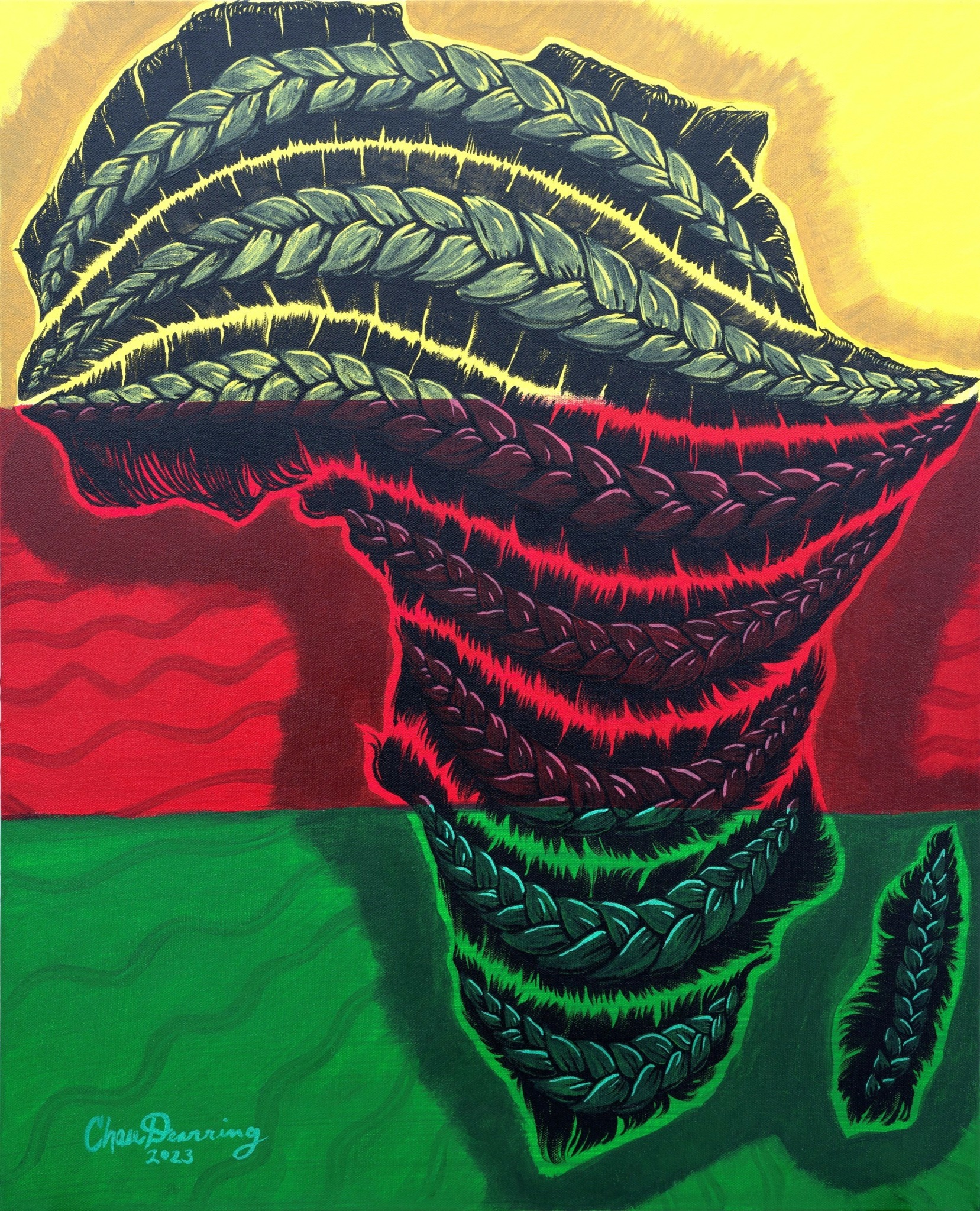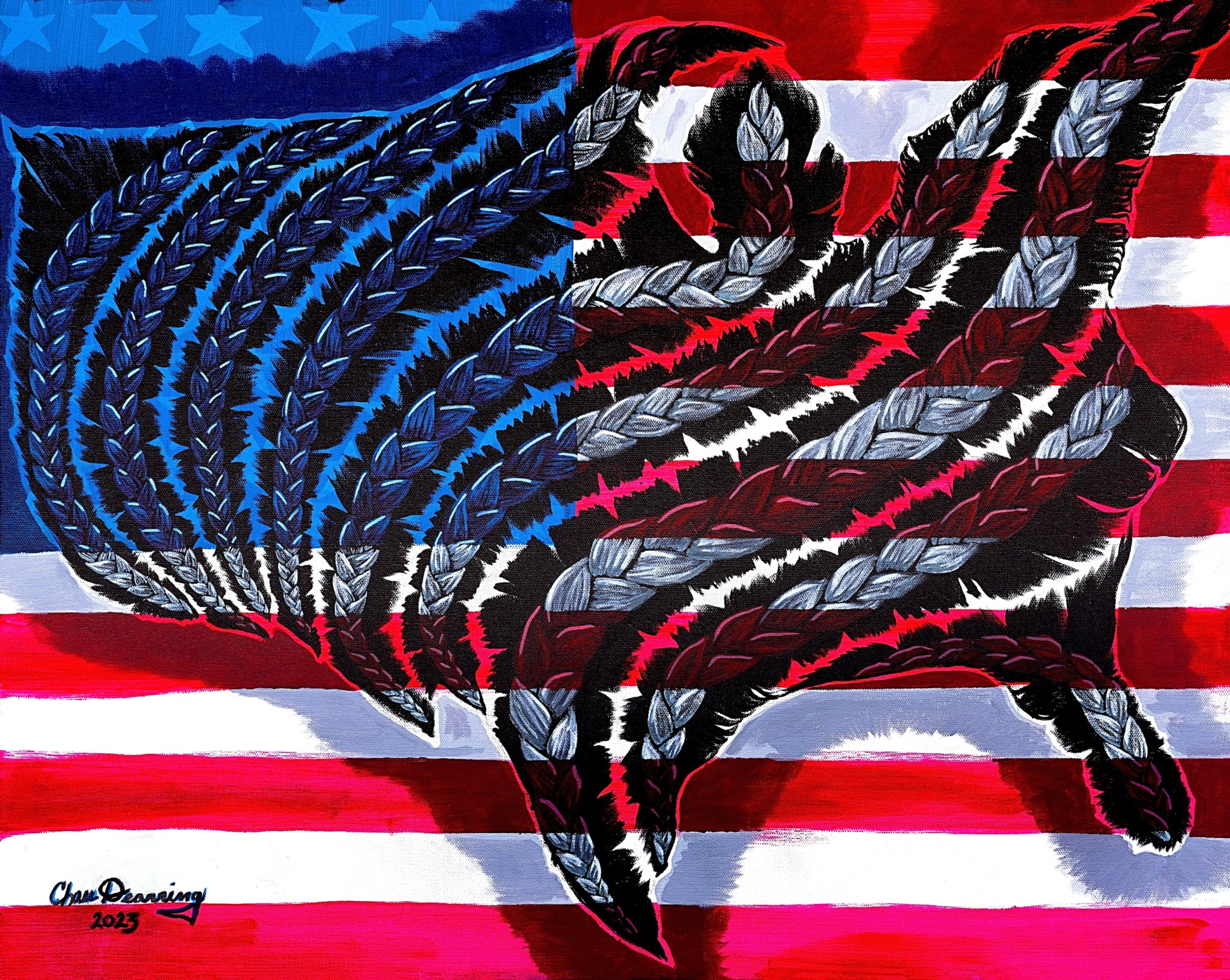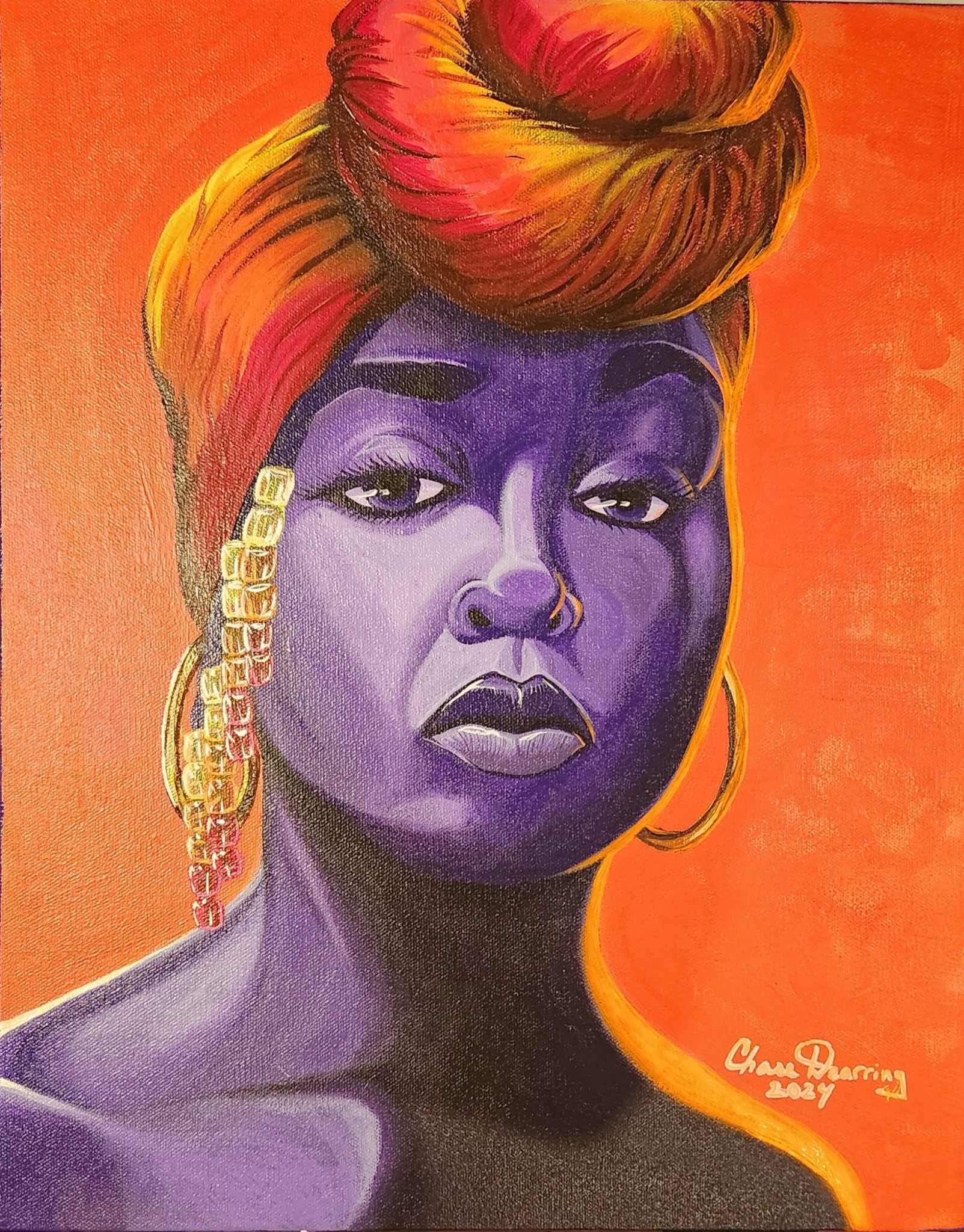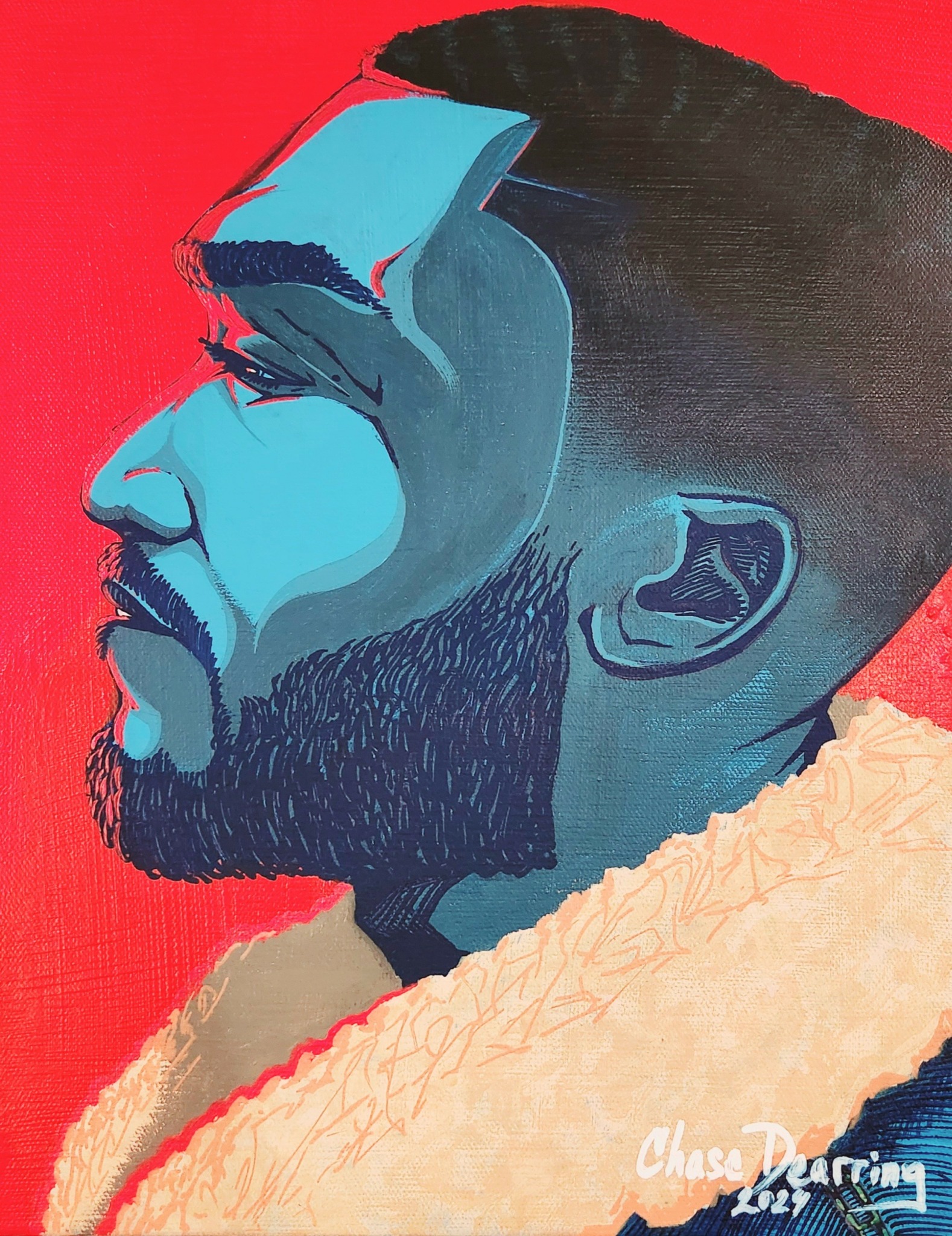 I am a self-taught artist and I have an illustrative style, but I do dabble in realism as I see fit. I believe myself to be like many other artists, but I do see my illustrations to be somewhat unique to myself. I love to pull from personal experiences and beliefs in my work. I enjoy conveying relatable emotions and experiences that viewers can see in themselves. I also love illustrating black history, and I’m getting more into the “Re-Rise” of Detroit. I’m most proud of the fact that I’m pursuing my dream and that I’ve finally been displaying my art in shows, auctions, and other events. I’m proud that I believe in myself more than I ever have! I’ve created a website: www.artbychasedearring.com that I continue to build on and promote myself on social media (IG: artbychasedearring, Facebook: ArtBy Chase Dearring, TikTok: artbychasedearring). I’ve sold a lot of pieces (in my opinion) and have developed a demand for my work, which is exciting as I try to balance creating with my work schedule and spending quality time with my beautiful wife. I’m, ultimately, just proud to be able to call myself an artist and that others do as well!