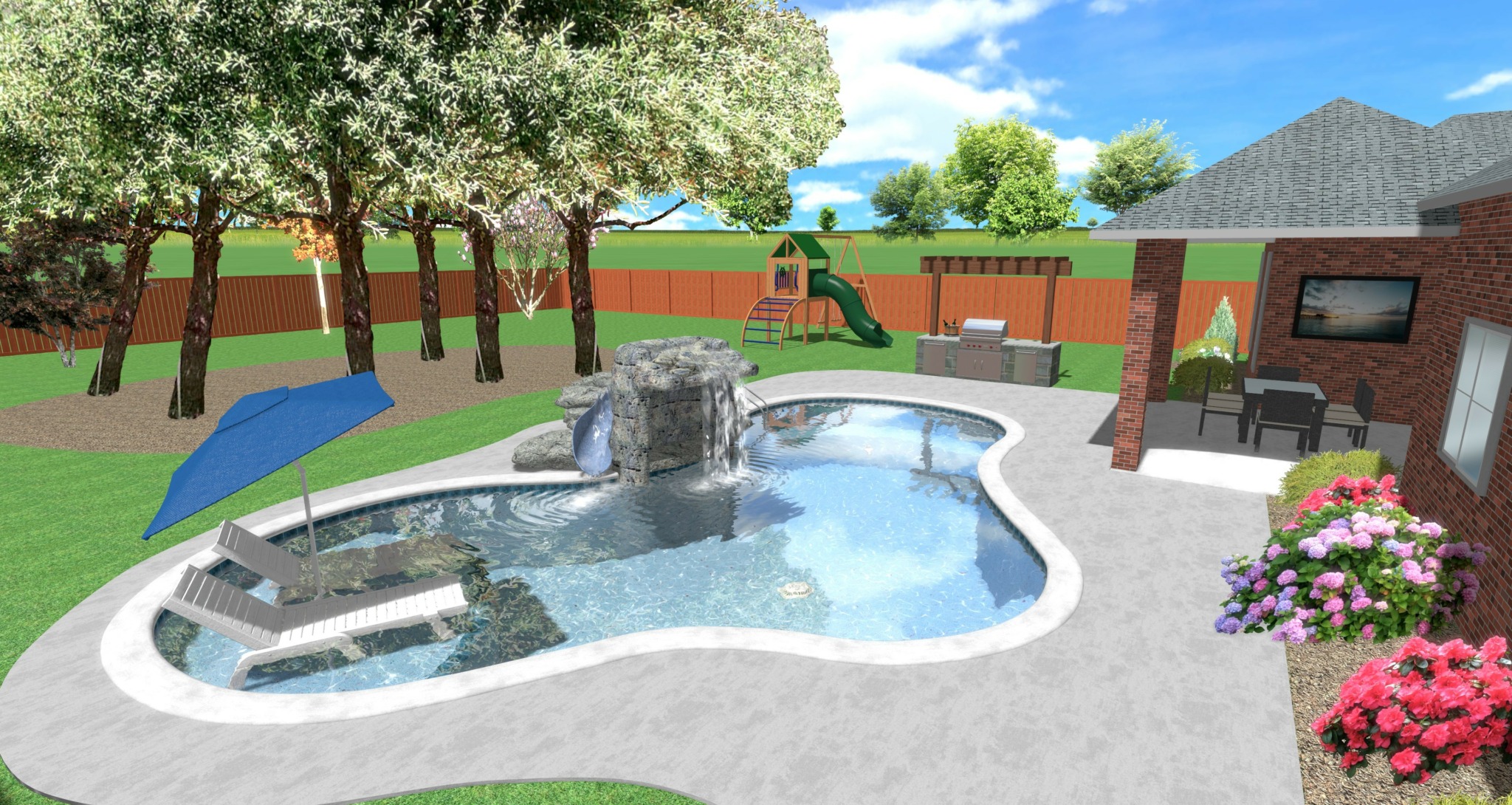 We offer complete outdoor living services from Pools, Outdoor Kitchens, Covered Structures, Pergolas, Fireplace and Fire pits and so much more. We also offer Master Plans for clients so they can do projects in phases.