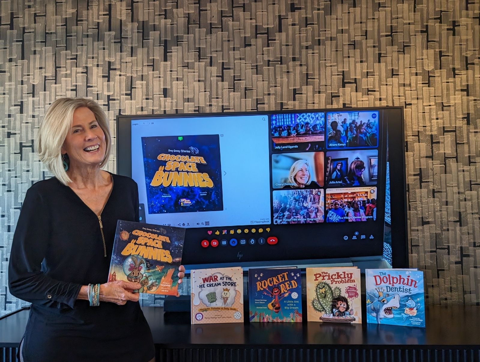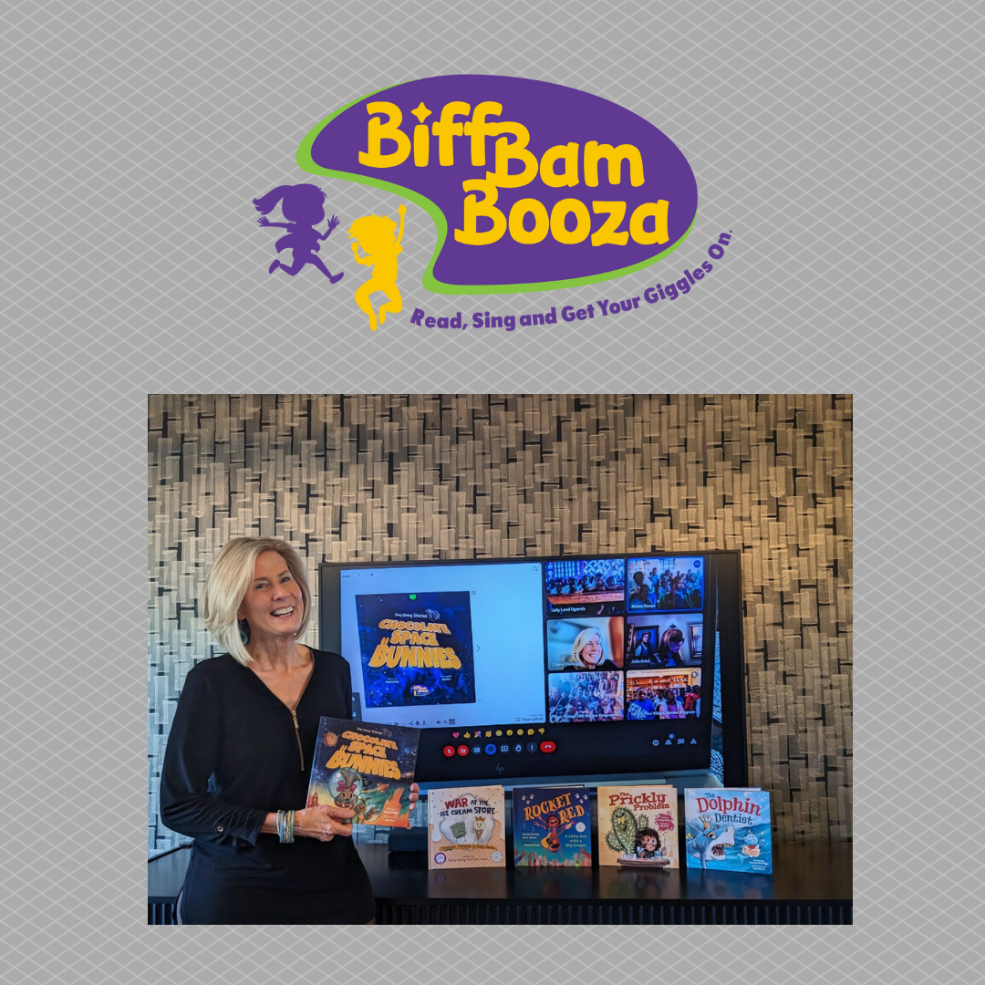 What I loved most was creating humorous lyrics with wordplay, which led my heart back to children’s songs–and then children’s books–and the Biff Bam Booza brand. There are 5 books in the Biff Bam Booza collection right now, with a new book (a race car adventure in a world made of cheese) to be released shortly. We’ve received numerous book awards and editorial critical acclaim, and have been featured in Kirkus Review Magazine. Several books have reached Best Seller Status on Amazon. But the most rewarding part is connecting with readers–when they share their experiences laughing and bonding with their kids…. or the heartfelt moment when I “Zoomed” into Africa to read Chocolate Space Bunnies, and the kids there jubilantly sang along to one of my songs…or when people tell me that adults love Biff Bam Booza books as much as children. Biff Bam Booza is still in the process of growing up, but wow, what a joy it is to unleash this dream.