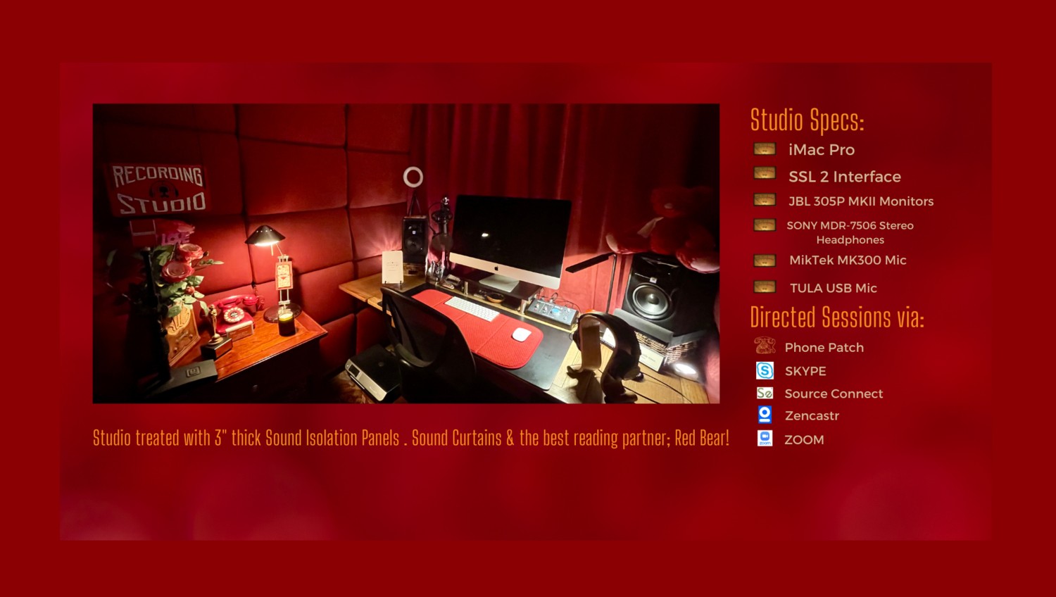 After studying drama, dance and voice in high school, I went onto to college to continue my creative studies. It was then that I was given an opportunity to work at the local NPR station in Santa Monica, CA. which has since become a nationally recognized station. I began there at the age of 18, and have taken a very circuitous route to get to where I am now. I’ve worn many hats in the creative arts and in “secular” jobs. From national radio and record promotion, ad agency producer, to film and television work; both in front of and behind the camera, working on several award shows both as talent and talent producer, before finding my “voice” in podcasting and voiceover.