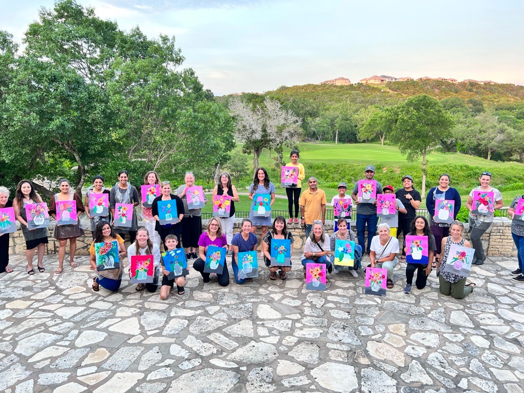 This leads me to where I am today, working a separate job to support me as well, but I’ve learned that my experiences in hospitality can fit together with painting to create a unique event experience. 512 Color City Studio is a creative event company that was founded on the desire to provide a supportive and inclusive space for anyone to enjoy and create. My goal is to make painting accessible to everyone, regardless of their skill level, and to encourage personal creativity and fun. I believe that everyone has artistic potential, this space where people can feel comfortable expressing themselves through painting. The best part of my job is when everyone holds up their artwork with pride and shares what they’ve created. It’s an amazing feeling, whether you’re an experienced painter or just starting out. Let me provide you with a stress-free and enjoyable experience where you can unleash your creativity.