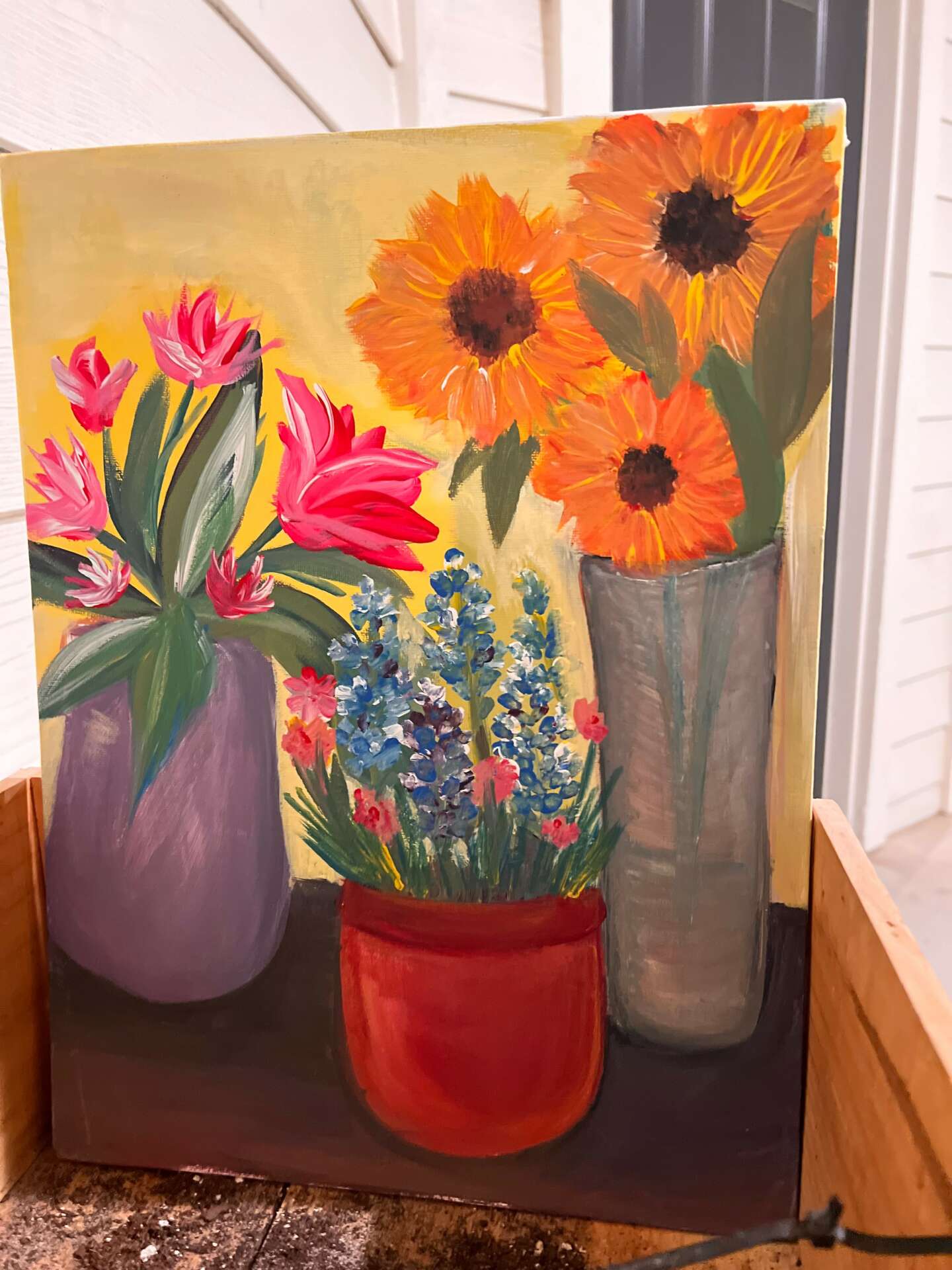 I am always busy working on paintings and thinking of new ideas. Although I feel fulfilled with my art, sometimes I miss human connection. I often go to the park to paint, but being around other people who are also interested in art and creating together feels different. You can be alone in your thoughts yet physically able to interact, pick each other’s brains, and learn something from one another. I have always enjoyed creating with others, but unfortunately, not many people want to get together to make art. That’s why it’s important to me to provide accessible painting in a group environment, prioritizing fun and learning. That’s also why I enjoy teaching others how to paint and sharing the things I’ve learned through lots of trial and error.