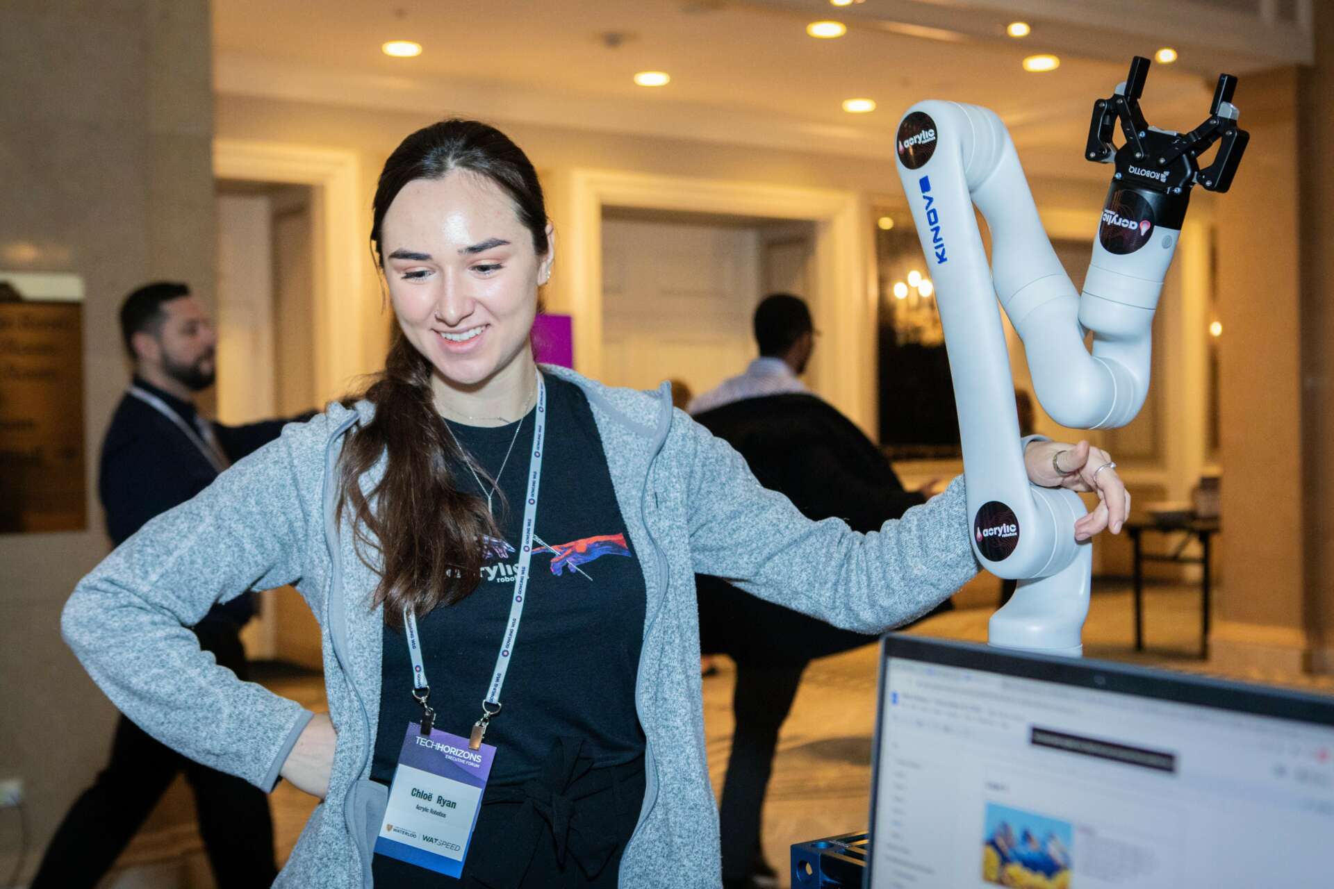 So, I joined some accelerator programs—where I was by a long shot the youngest in all of them participants—and learned the entrepreneurship fundamentals I probably should have started with. I was named the Top Entrepreneur out of my cohort at Next 36, Canada’s flagship program for the country’s top 36 young founders; and we were awarded the Top Tech Innovation prize at Centech, a UBI global Top 10 deeptech incubator, where most of our peer cohort companies were PhD research spinoffs. We turned Jared into a surprisingly functional coffee table and bought a cheap toy robot from China to validate the fundamentals with. I did my homework, interviewing dozens of artists and buyers, reading about lean startup principles and putting them into action.