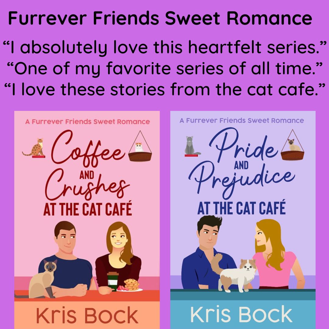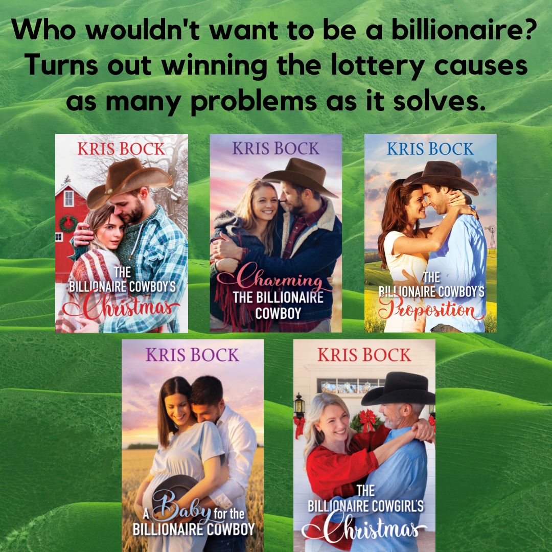 As Kris Bock, I write romance, mystery, and suspense. In the Accidental Billionaire Cowboys series, a Texas ranching family wins a fortune in the lottery, which causes as many problems as it solves. My Furrever Friends Sweet Romance series features the employees, customers, and cats at a cat café.