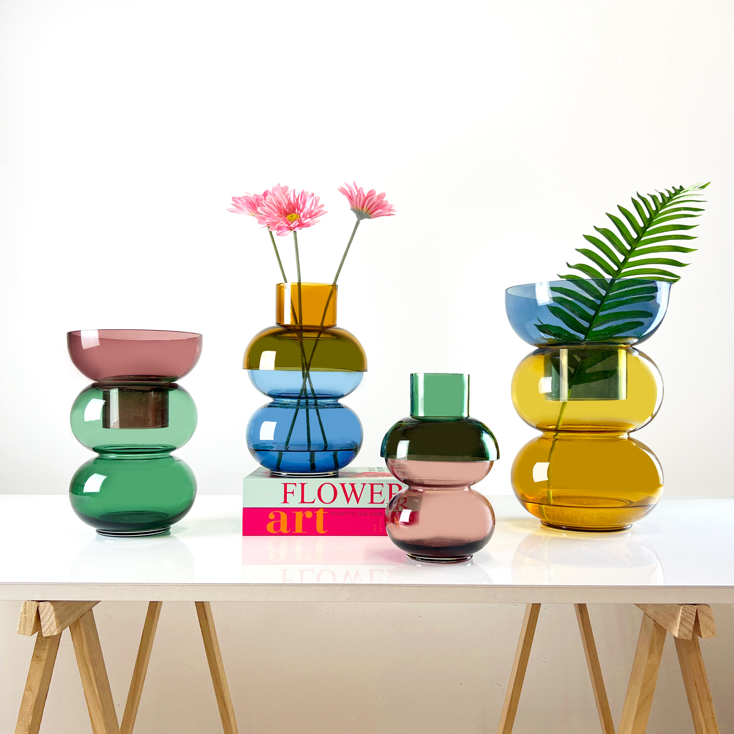 Vases: These are versatile, featuring a wide opening for bouquets and a smaller opening (achieved by flipping the top) for single buds or plant propagation.