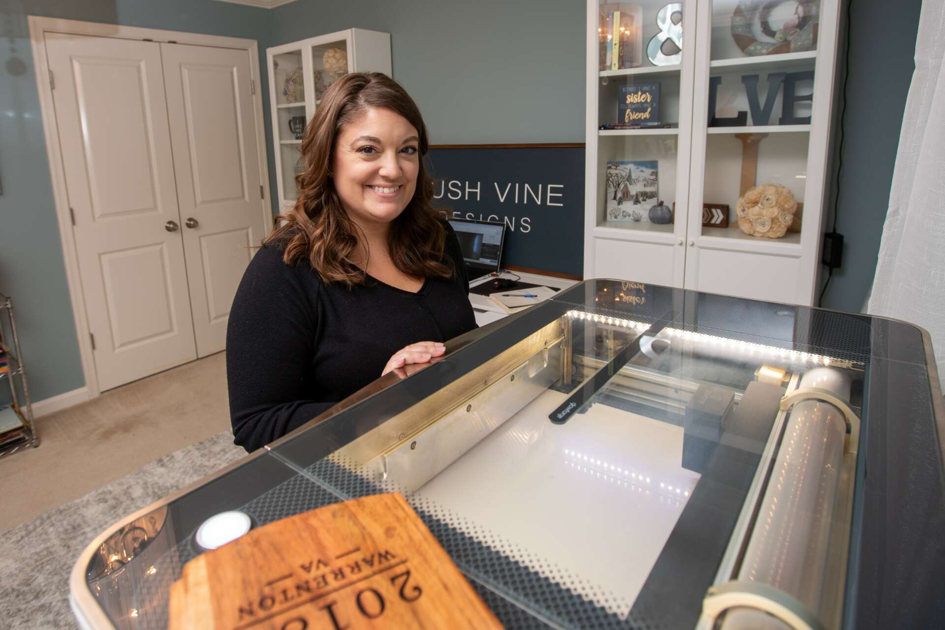Now, in our seventh year of operation, I take great pride in running Lush Vine Designs from the comfort of my home. Lush Vine Designs is a one-stop shop for unique, high-quality gifts and branding solutions. From woodworking to graphic design, I am continually inspired to create pieces that are as unique as each one of our clients. Our diverse range of products can be found both in a few cherished local stores in the Northern Virginia area and shipped nationwide across the United States.