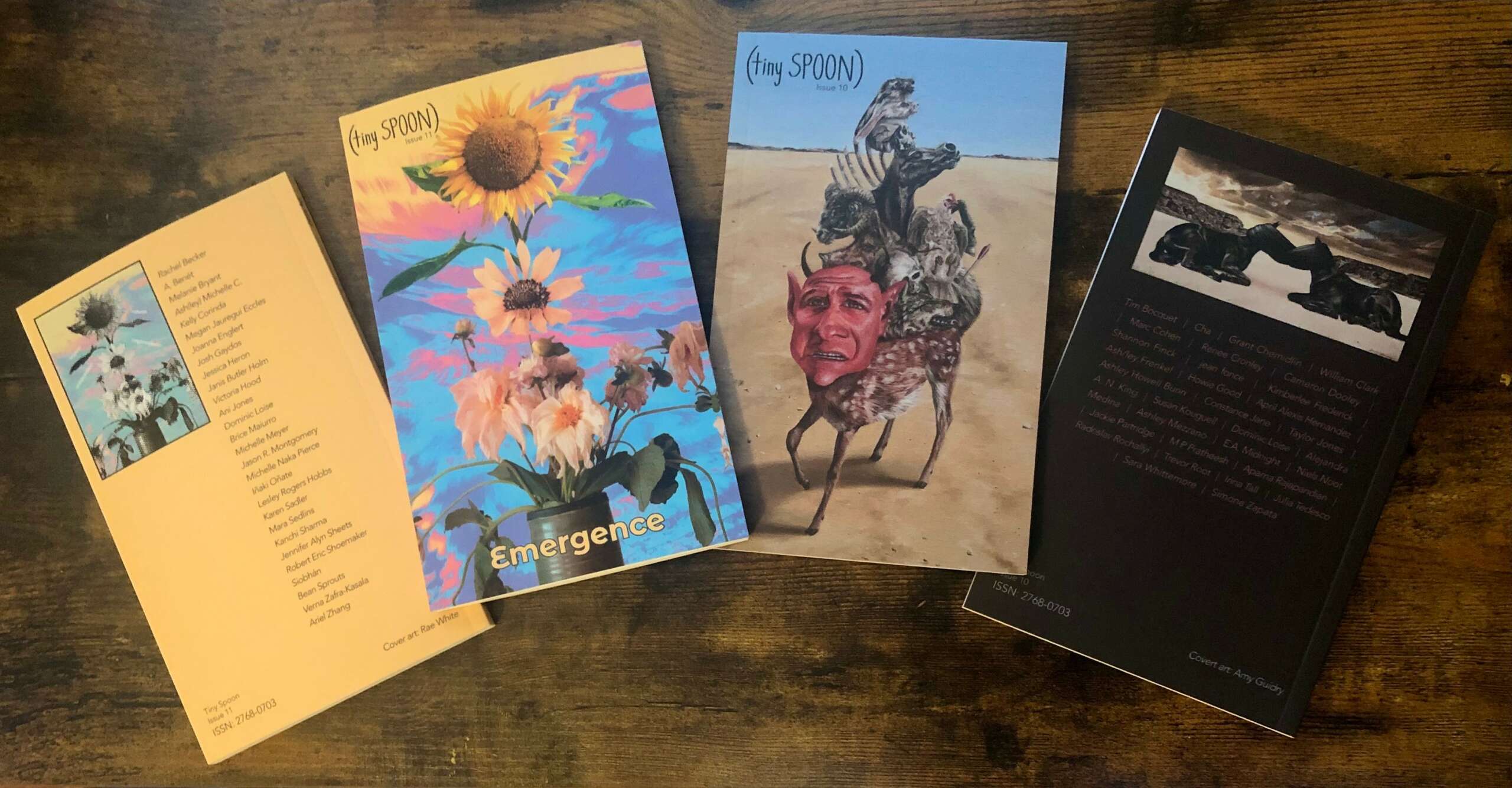 Embodied Unconscious cover art: “Surreal Scene” by Mina Loy, courtesy of Roger Conover, for the Estate of Mina Loy.” Tiny Spoon Issue 10 cover art: Amy Guidry Tiny Spoon Issue 11 Emergence cover art: Rae White