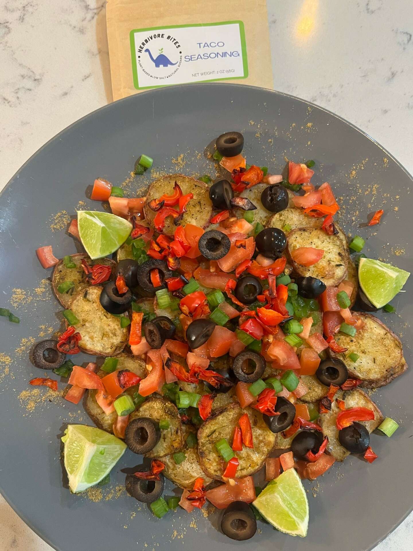 We first came up with the idea for Herbivore Bites during the pandemic lockdowns after taking an online cooking class. It had only been 9 months since we started our plant-based journey and we wanted to learn how to cook more plant-based foods. (When you switch from eating everything to only eating plant-foods, there is an adjustment period for not only your body, but your taste buds and we were struggling with certain food cravings.) The one thing we found that really helped us through those times was adding seasoning blends to foods. Unfortunately we had a hard time finding seasonings that were clean with no preservatives. So one day Mitch just started playing around with different spices in the kitchen and it wasn’t long until he made a delicious version of Italian seasoning except ours tasted just like sausage! (Today this seasoning blend is our Italian Sausage HOT Seasoning.) Shortly after making this flavor, we decided to make a milder version that wasn’t as spicy and had a bit more sweetness. (Today this seasoning blend is our Italian Sausage MILD Seasoning.) We found ourselves using these seasonings every day because they were helping to satisfy those cravings we were having especially when we put them on bread, potatoes, mushrooms, pasta, tofu, vegan butter and more. Even salads tasted better when we substituted our seasonings in place of dressings. A month or two later we decided to send a few bottles to our son for his birthday. We packaged them up pretty with fun labels and sent them off. (He isn’t plant-based, so we were very curious to get his opinion.) He LOVED them! He told us the flavors were fantastic on meats as well as with cheeses, creams and butters – the foods we no longer ate. It was at this moment we realized more people were eating plant-based foods, so maybe we should make this into a business.