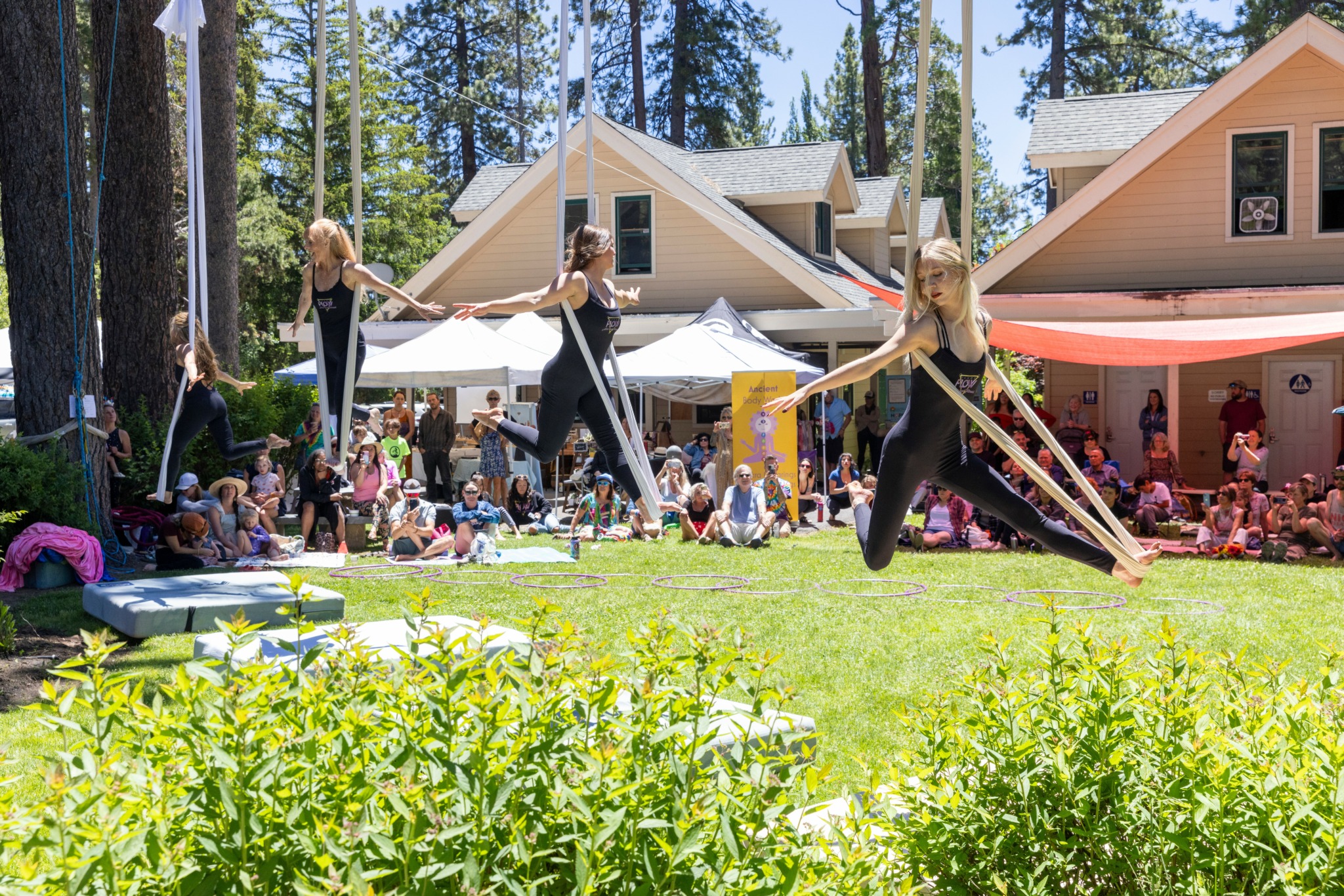 So we rebuilt. I leaned on our team and filled leadership gaps with strong, passionate people. We brought on Alicia Streetman as our Aerial Director and Angela Kearns as our Marketing & Community Outreach Director, both aerial teachers, with strong backgrounds in those areas. Meg Cooper, one of Kelly’s closest friends, a dedicated movement artist, and an original Tahoe Flow Artist, became our Circus Camp Director to help build out our youth programming, an essential niche in our mountain town.