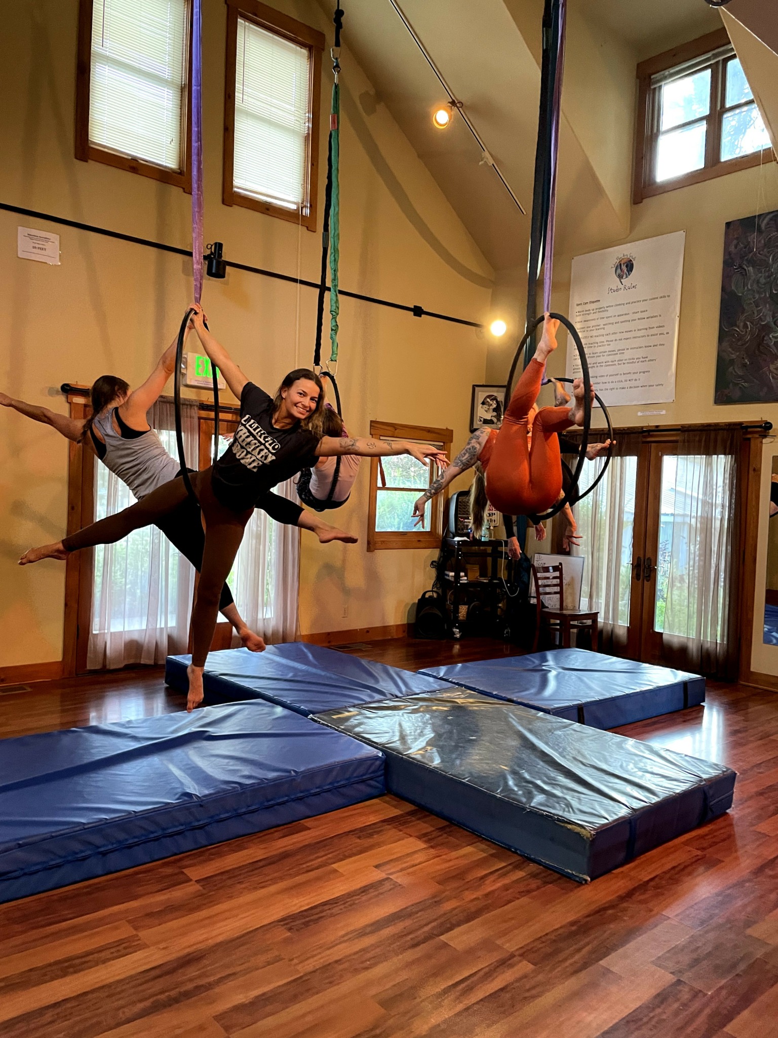 Integration of Fitness and Arts is part of what makes us unique: We’re one of the few studios blending fitness training with aerial arts, yoga, and recovery. It’s not either/or—it’s both.