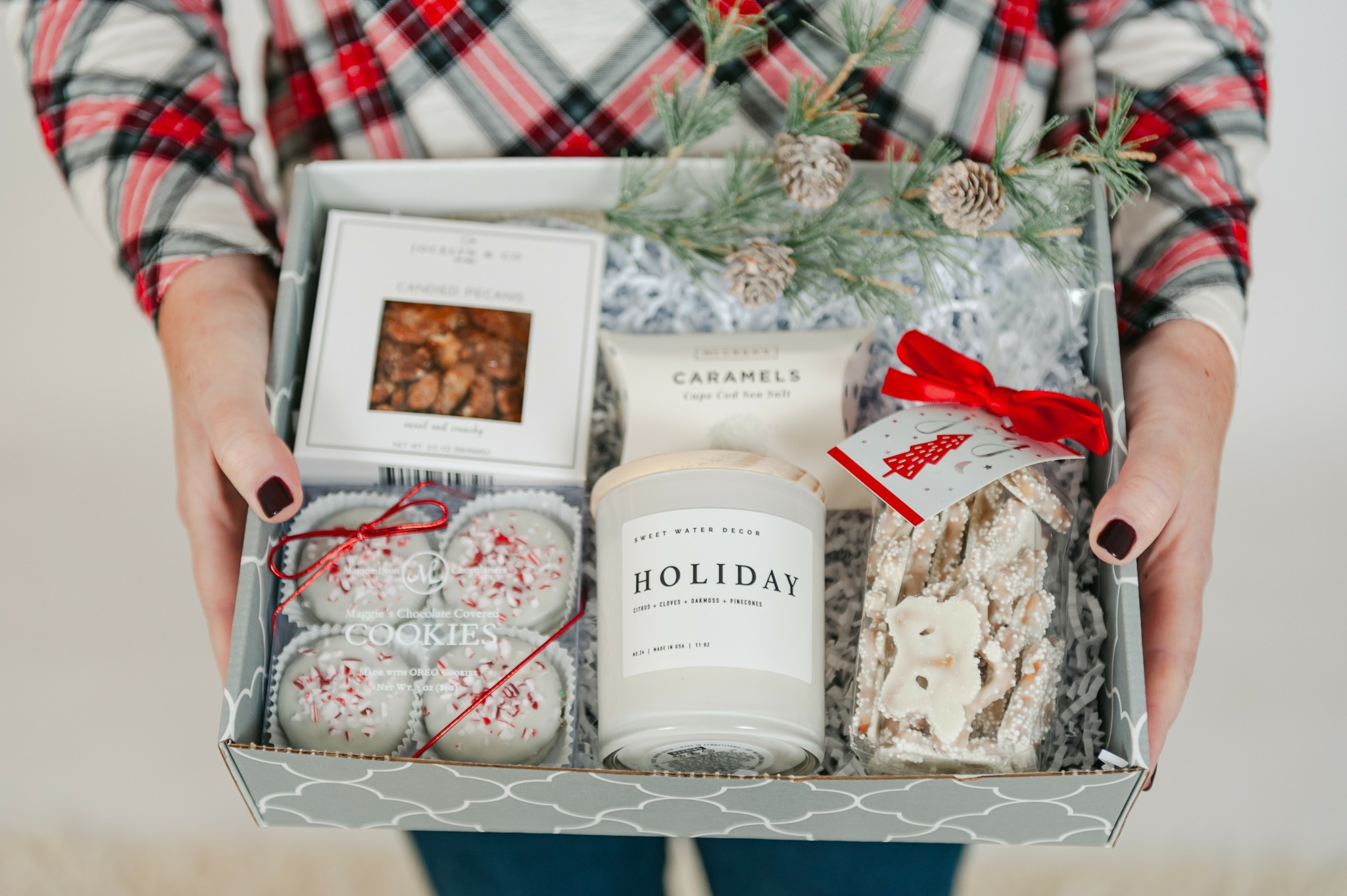 We carefully select unique gift items from brands that we love to create beautiful one of a kind gift boxes. You can select the perfect box for any occasion, and we will send it with love. We also create custom boxes for business owners that we send for them. We can add personalization, custom cards, etc.