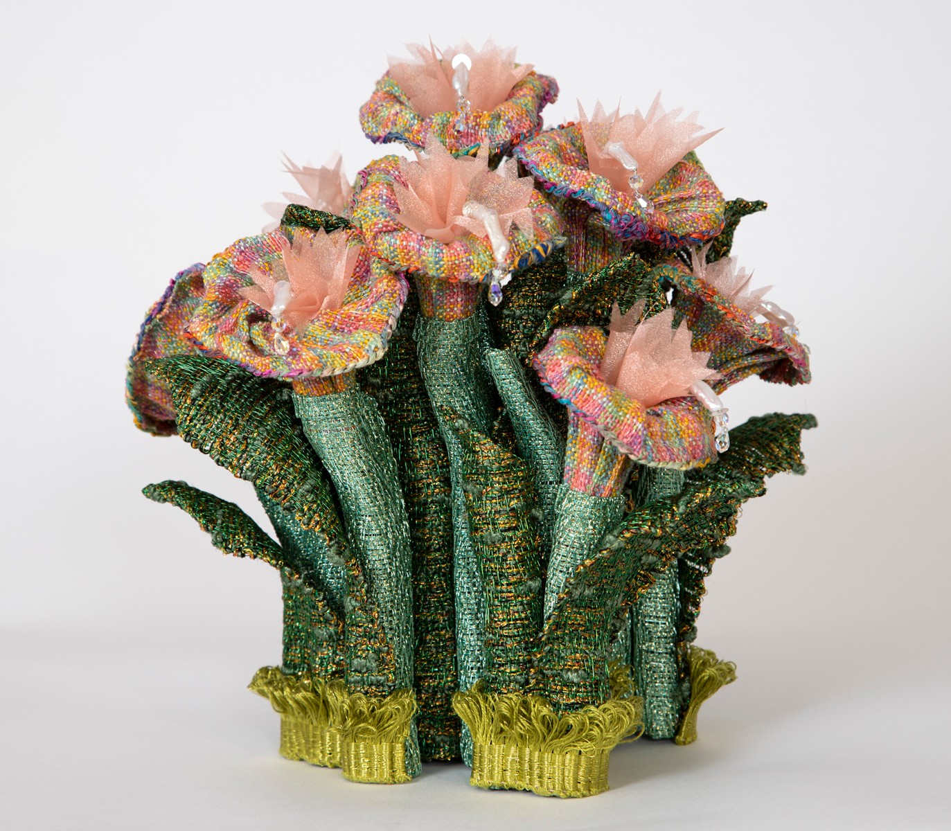My professional art life has been so exciting, rewarding and fulfilling! I have followed the winding path and now seamlessly blend my art and teaching into everything I do. I retired from the classroom about three years ago, and am back in my studio full time. My husband and I have mounted several exhibitions of his resin paintings along with my fiber sculptures in Coral Reef Installations. Being back in the studio has allowed me to focus on not only creating the course content for my Weaving with Wire classes, but has also provided the time and space to continue pushing my artistic ideas using the woven metal fabric I create.