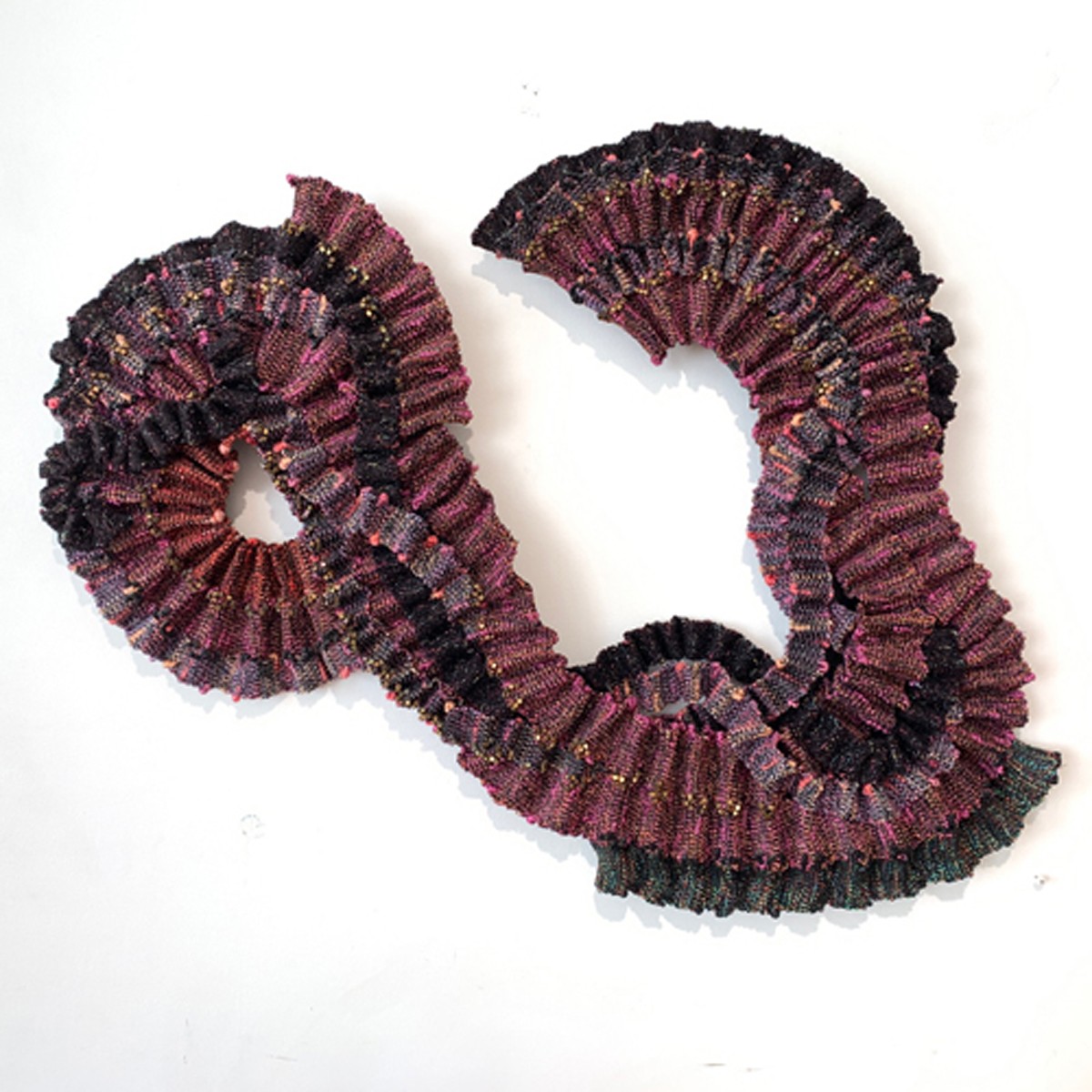 My weaving career has stretched over decades. At one time or another, I have woven almost any type of product that can be woven: household textiles, baby blankets, throws, clothing, accessories, jewelry, art sculptures, and wall hangings. I have completed commissioned items for people and participated in many juried art fairs locally and across the United States. I have participated in cooperative retail galleries and started a custom textile studio that sold to design showrooms across the United States. And, I have exhibited my fiber artwork in local, regional, and national juried exhibitions for decades winning many awards.