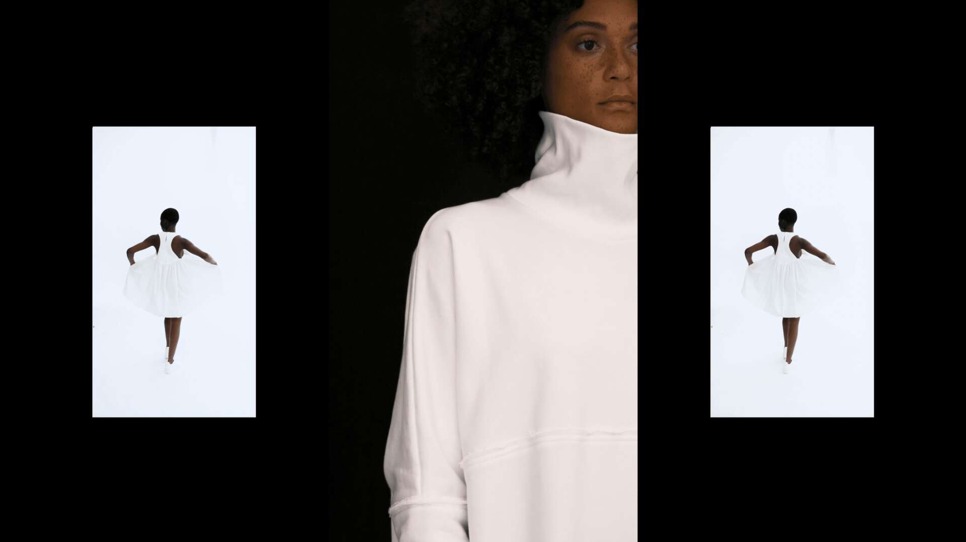 The creation of this project was a delightful improvisation. During a 1-day shoot, the two modern dancers I collaborated with in Los Angeles, Zhihan Yang and Alve Fu, showcased remarkable performance and mysterious feminine energy through their movements. Our makeup artist Shu incorporated the delicate luster of mother-of-pearl onto the dancers’ faces, creating an oceanic metaphor: the dancers’ faces became the imagery of conch shells. My long-term creative partner, cinematographer Guanting Du, also contributed countless poetic visual concepts, leaving ample negative space around the movements.