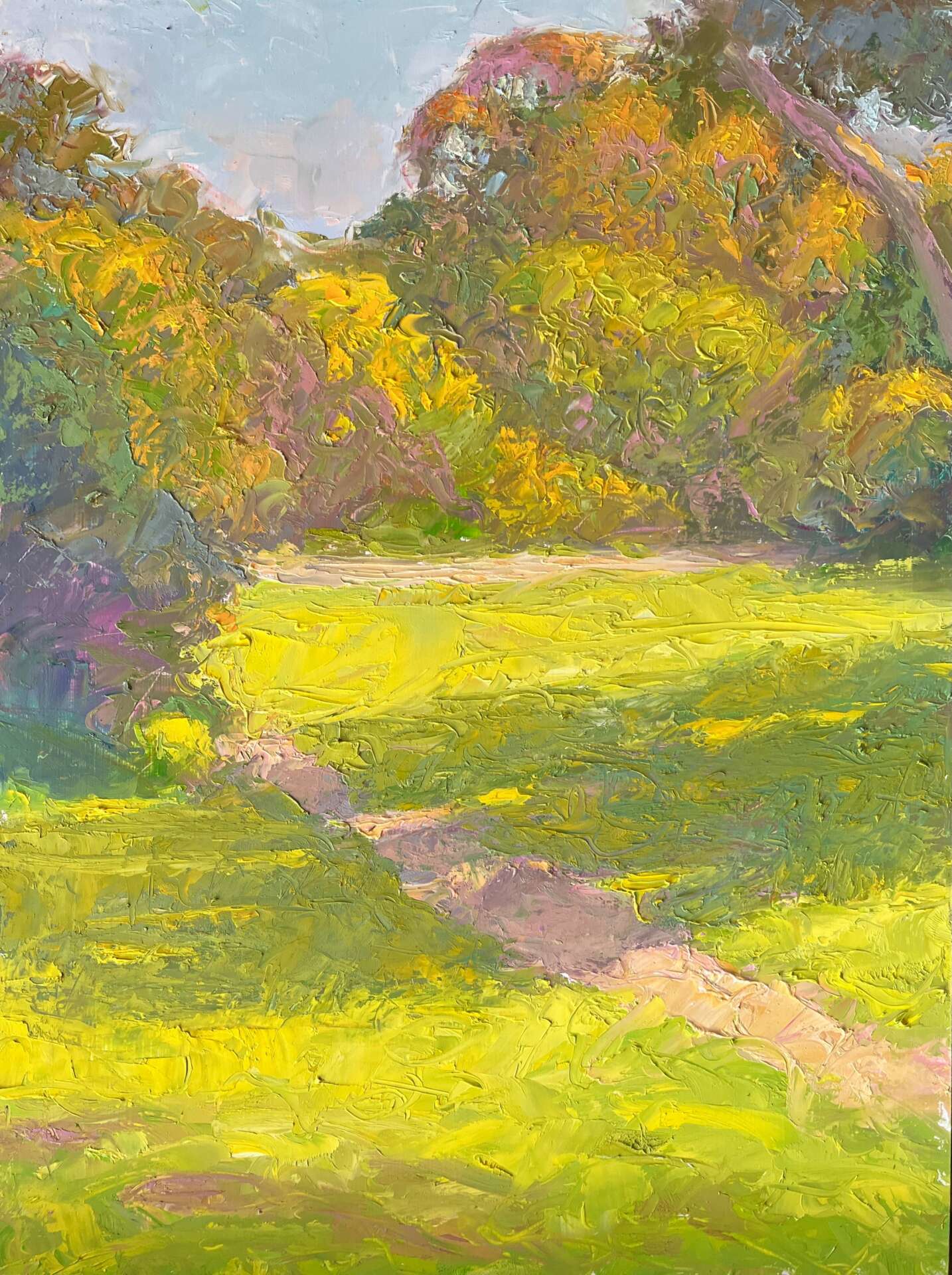 The biggest learning came with the insight that doing studies is essential to the speed of skill growth. At first I thought of painting as always going for a finished piece with every canvas. Then I learned that focusing on specific aspects of the process of painting was more beneficial. Things like doing quick landscape or still life studies that focused on creating a color harmony based on the major masses (areas of the subject that are either in direct light or indirect light (shadow). I’ve done hundreds of these small paintings that aren’t intended to be shown but are strictly for developing my skill of color perception and color mixing to capture my visual experience. Another has been using a sketch book and pencil to study different compositions of the same subject. The way the subject is arranged on the canvas has a powerful influence on the overall impact of a painting.