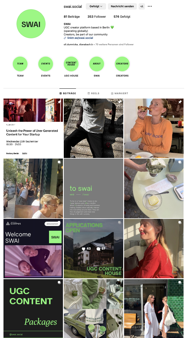 I met my co founder Olivia at my co working space. She asked me if I wanted to meet her for a coffee and we immediately connected over our love for great content and our shared interest into the creator economy. Olivia pitched me her idea for SWAI literally 30 minutes after we met for the first time and we started working on SWAI the day after. A first test website was built within one week. Of course we changed and adapted the business idea and concept in the beginning quite a lot, talked to a lot of creators about their needs and eventually started SWAI as a UGC platform and creator ecosystem.