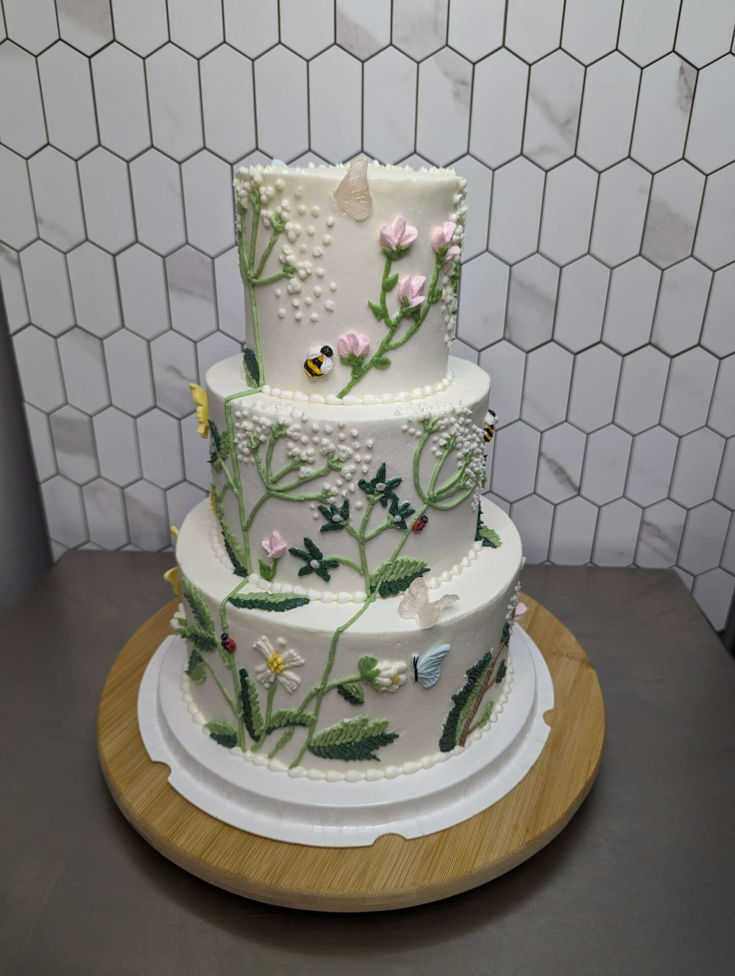 I started my cake journey with the gift of a birthday cake to one of my friends. It was a spur of the moment decision that changed the course of my career. The cake was strawberry filled pound cake covered in quilted fondant accented with pearls and flowers on top. Looking back it was ambitious for a first cake, but it turned out great. I made more birthday cakes for fun and they began to improve. My cousin was the first to offer to purchase a cake for her engagement party. This is when I began to realize I could take my hobby and turn it into a career. As I took this new path I was lucky to work with an amazing small town cake decorator. I absorbed all the knowledge I could for a year until she retired. She taught me how to model fondant, stack multi tier cakes and fed my creativity. Even with a mentor trial and error is the best teacher. Social media and videos have been beneficial in learning new techniques as well. The guidance provided is invaluable when working with new materials. I have also worked in small and high production bakeries where I learned more about production speed and efficiency. Time is always the largest obstacle to learning more. Finding the work life balance is always a struggle. In the end it’s worth it when you create something beautiful you have pride in.