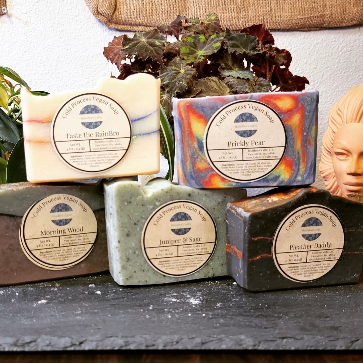 We are a queer couple that live in Vancouver Washington. Colton has a background in Human Resources and business administration while Zac has a background in food service and sourcing. We combined our individual skills and passion for vegan handcrafted bath and body products to form RainBro Crafts. Our mission is to make the world a little bit gayer, greener, and cleaner. Our product line consists of vegan soaps, scented candles, bath bombs, beard oils, shampoo bars and lip balms. We’ve identified a target market of customers who are looking for high quality self-care products that align with their values while still being affordable. We ensuring that all of our products are: