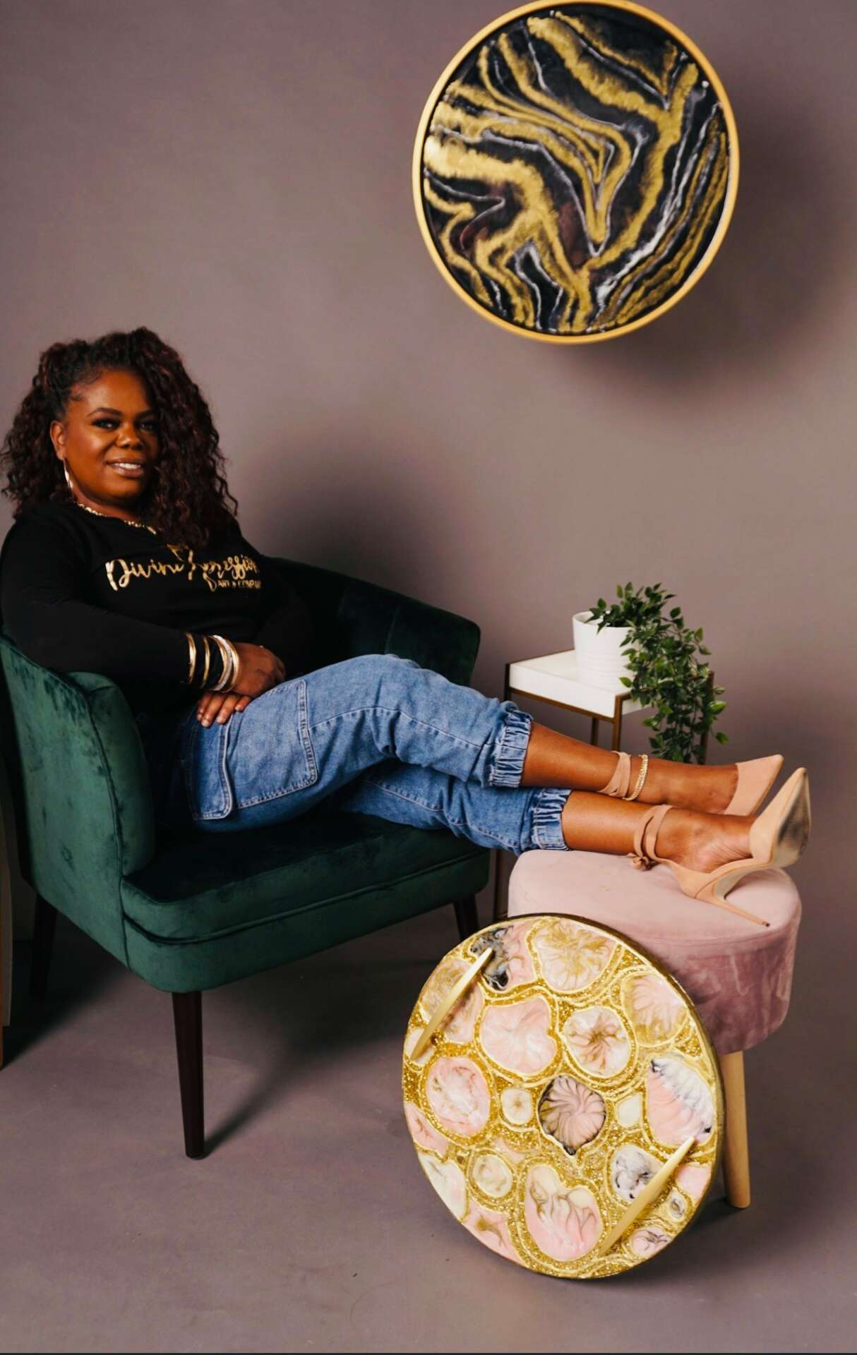 First thank you for having me! I’m the owner and founder of Divine Xpressions Art and Company. I mainly specialize in resin artwork. I’m known for my Luxury Agate Geode Art paintings in which I add positive energy crystals and stones. These paintings bring such tranquility to your space with an added beauty of decor. My company provides much more than art paintings, the word “Xpressions” that is used in the name of my company is used because it gives my clients a chance to express themselves through my creations. Working with my clients to make their visions a reality. One example are the purses I create, I personally work closly with the client to bring their visions to life. I also specialize in servicing custom flower preservations from special moments in one’s life such as wedding bouquet, pictures, memorabilia, and cremation jewelry from loved ones that they may have lost to wear closely to their hearts. I also offer a list of home decor such as Resin clocks, handmade serving trays, coasters, charcuterie boards, door wreaths, porch signs, flower bouquets, and I also design table furniture.