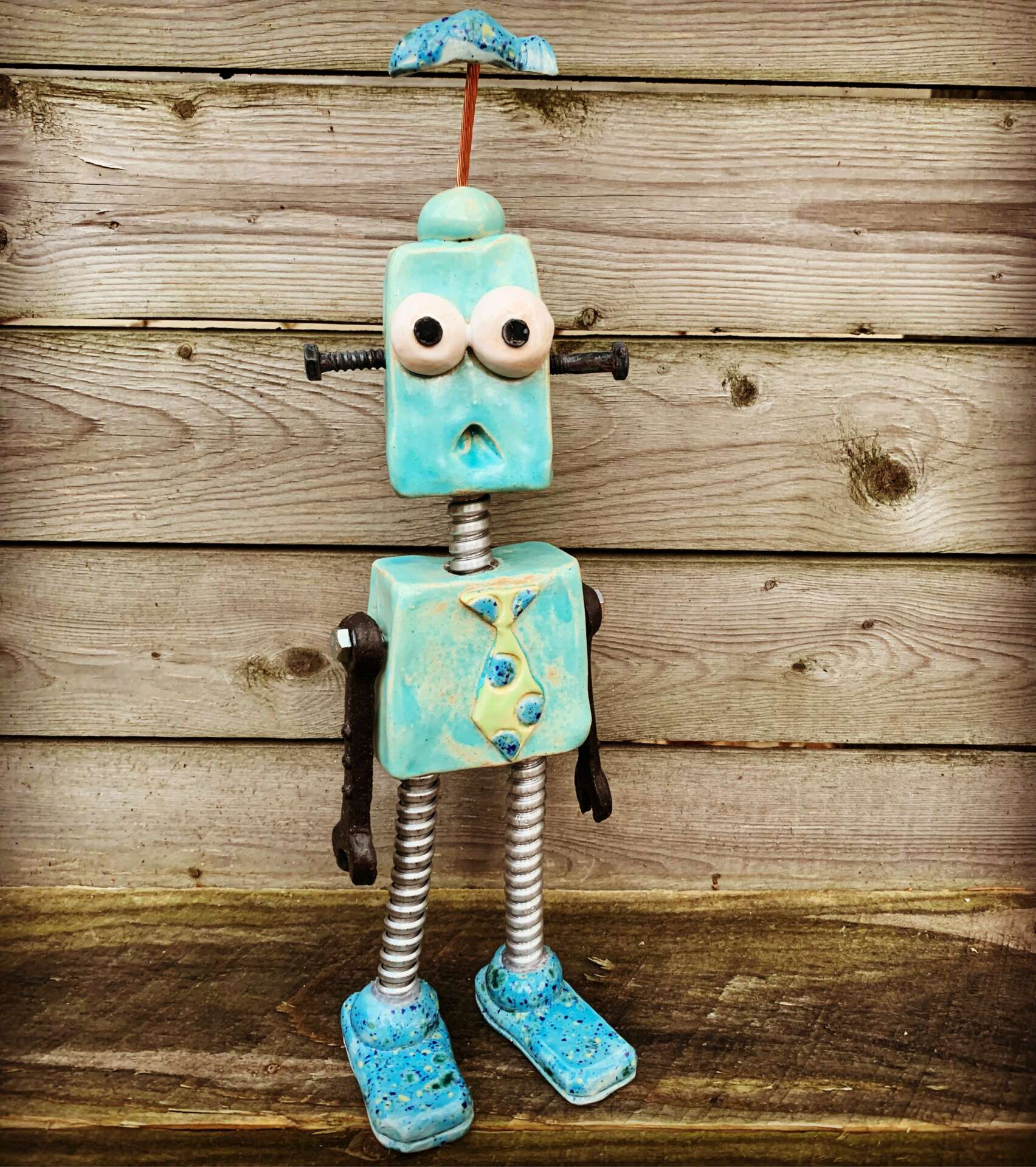 Bechler Pottery is different. Using clay as every pieces base, they will add copper wire, and wood, and old telephone wire, and antique wrenches, and anything else they can find to make their mixed media sculptures come to life!