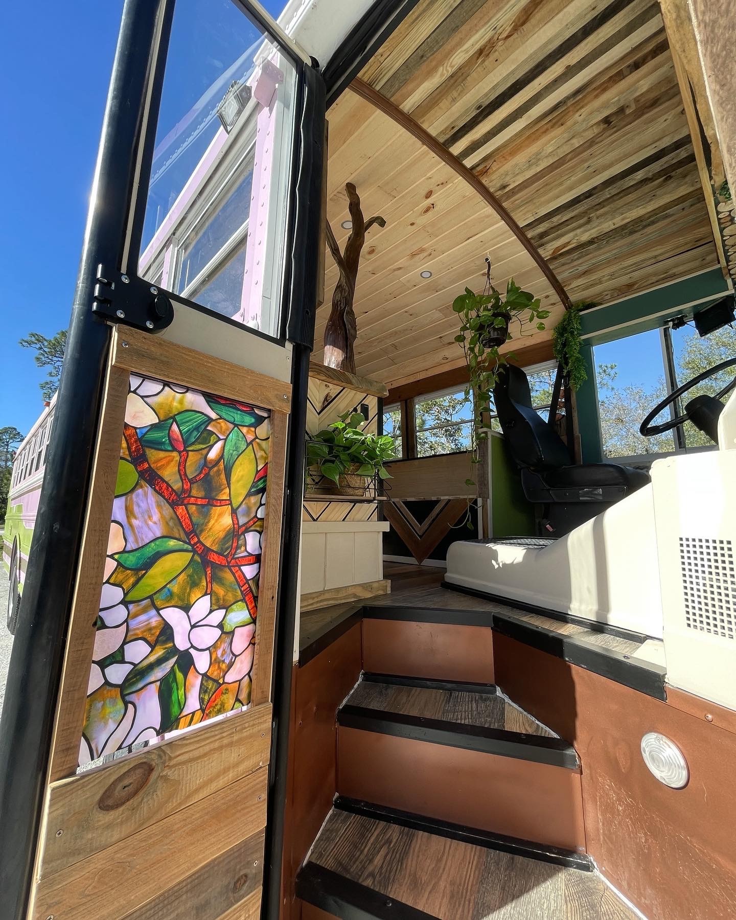 I haven’t had to spend a dime on marketing because all of my clientele is from social media. I didn’t have a following before I got on the road. I was plain Jane and didn’t post much. It wasn’t until I started sharing about my travels and what I was doing when people grabbed on and wanted to see and know more. To think that people who watched what I did were in absolute awe, I mean geese I was too, but after a while, the way that I lived just seemed normal. That didn’t make me turn my head though, I wanted to share my travels, it was a great way for me to also get more of my photography out there. In 6 months I’d grown to 5k followers and that was just the beginning. I mostly shared stories on instagram and the more I was sharing my life, the more followers I grew. By the time I started building buses, my following grew to over 20k followers. I was recognized in the “Skoolie” community. Even though there’s a ton of people that live in buses, out of the majority of us on this planet, we are really just a very small portion. Also, not a lot of people live in buses for more then a couple years. So being that I went on almost 5 years, I was well known. Over the years, people knew me as a plant eutyhiest and someone who loves to use live edge. I love using reclaimed wood, it’s like brining nature in. Even though every single one of my builds is different and unique, I use plants and reclaimed wood in every single one of my builds. I incorporate me and my love for design and nature. It’s easy to walk into any of my builds and know it was one of mine. My attention to detail and my artistic “out of the box” ideas makes my business and I different than any other bus conversion companies.