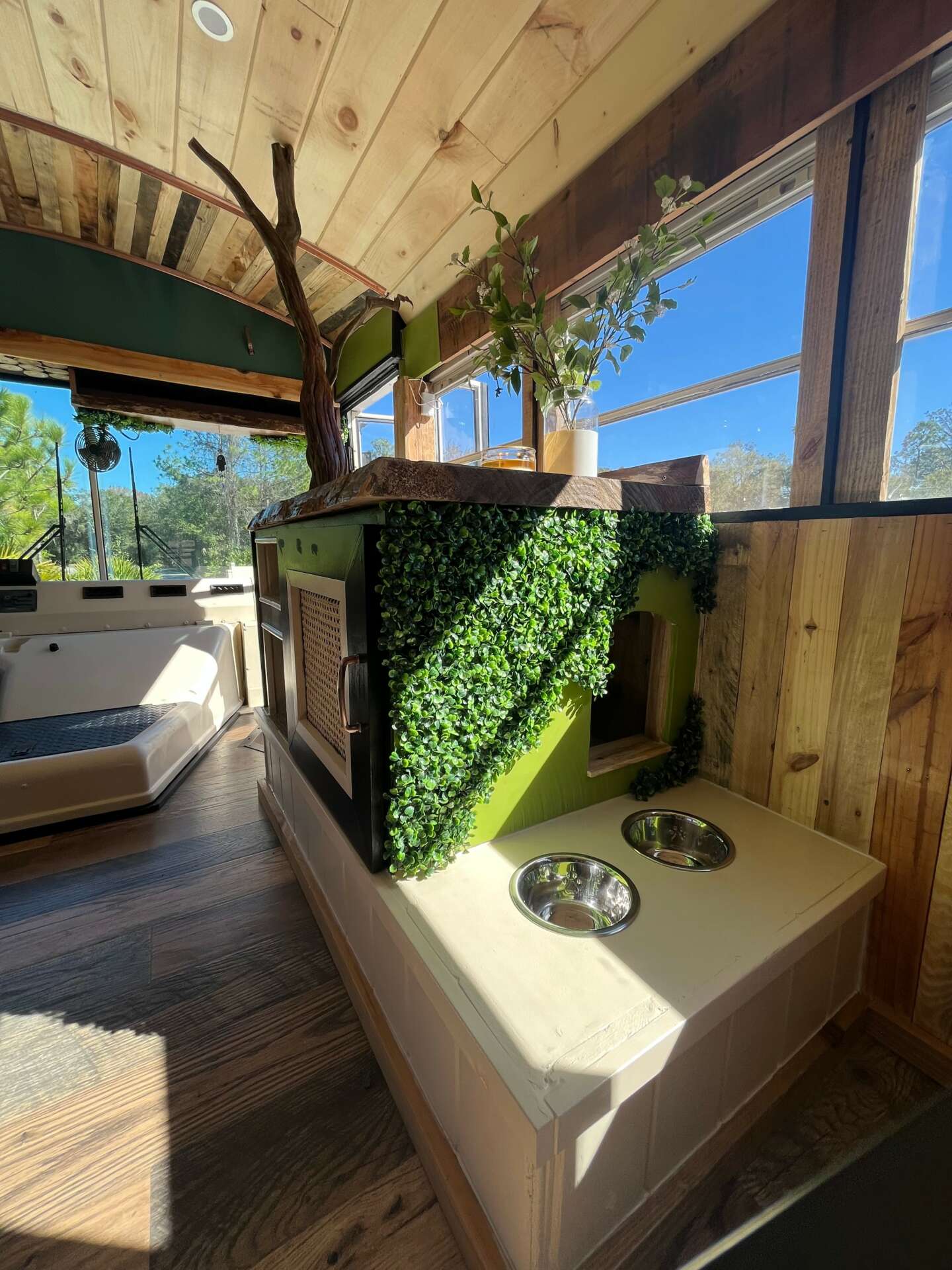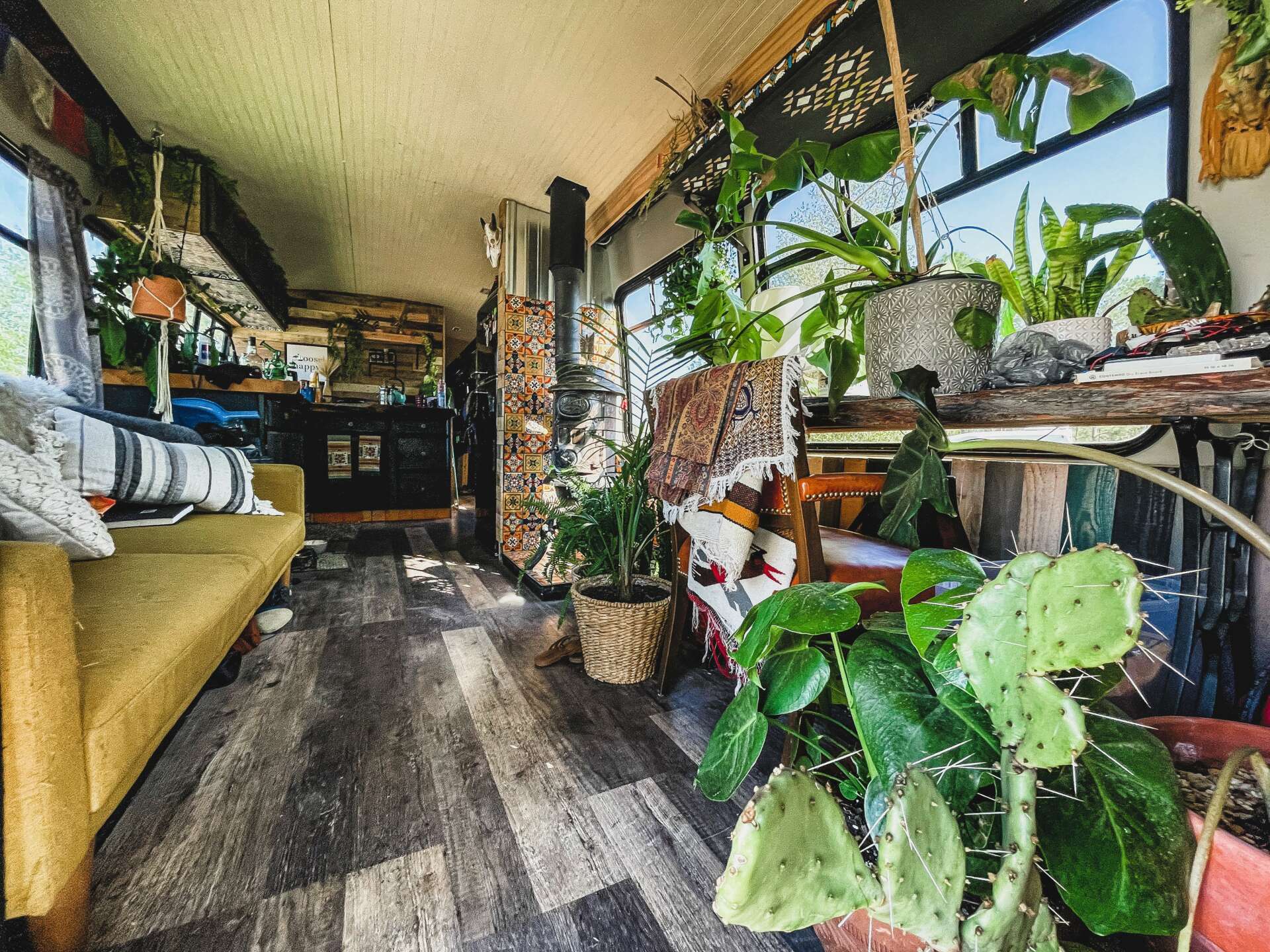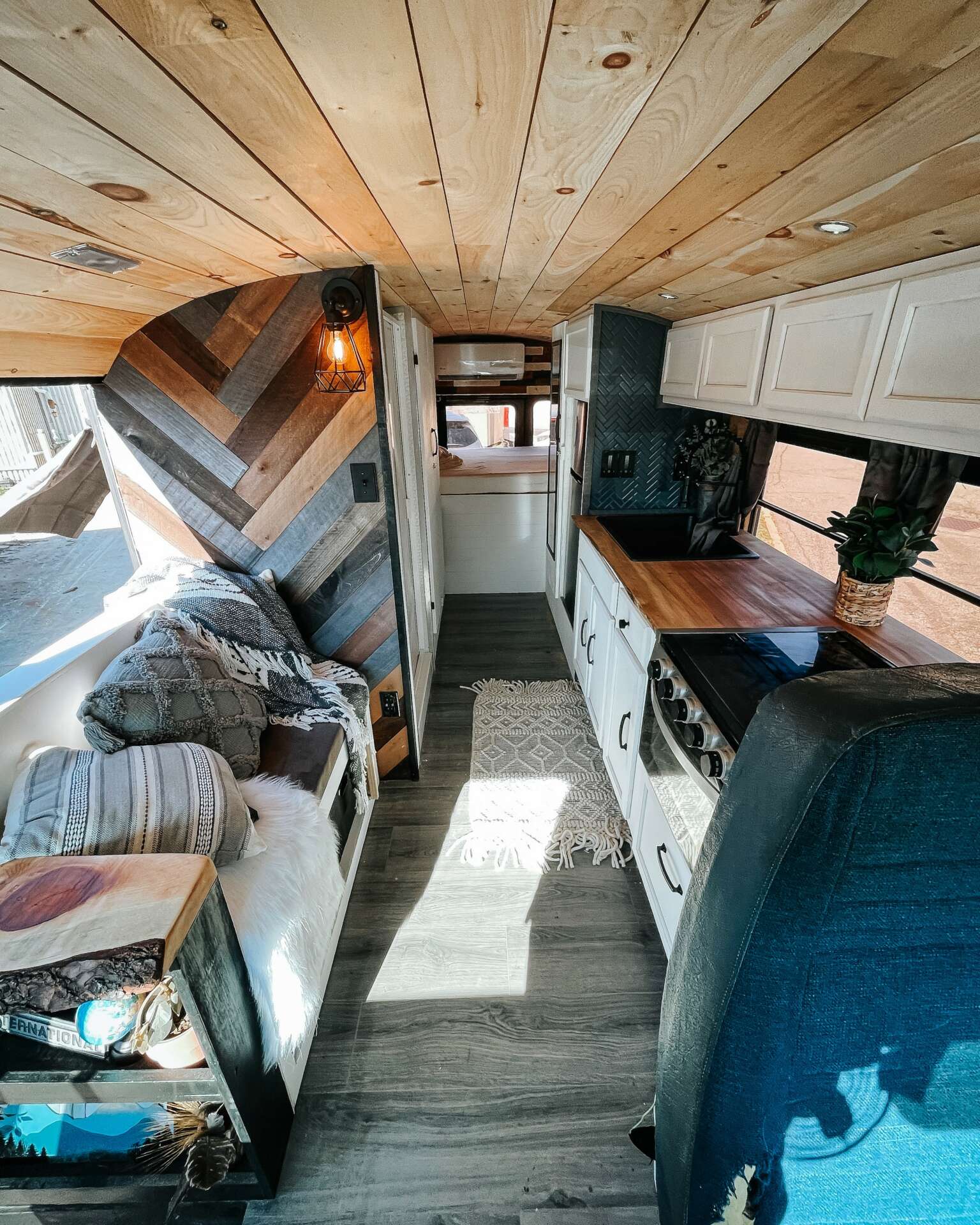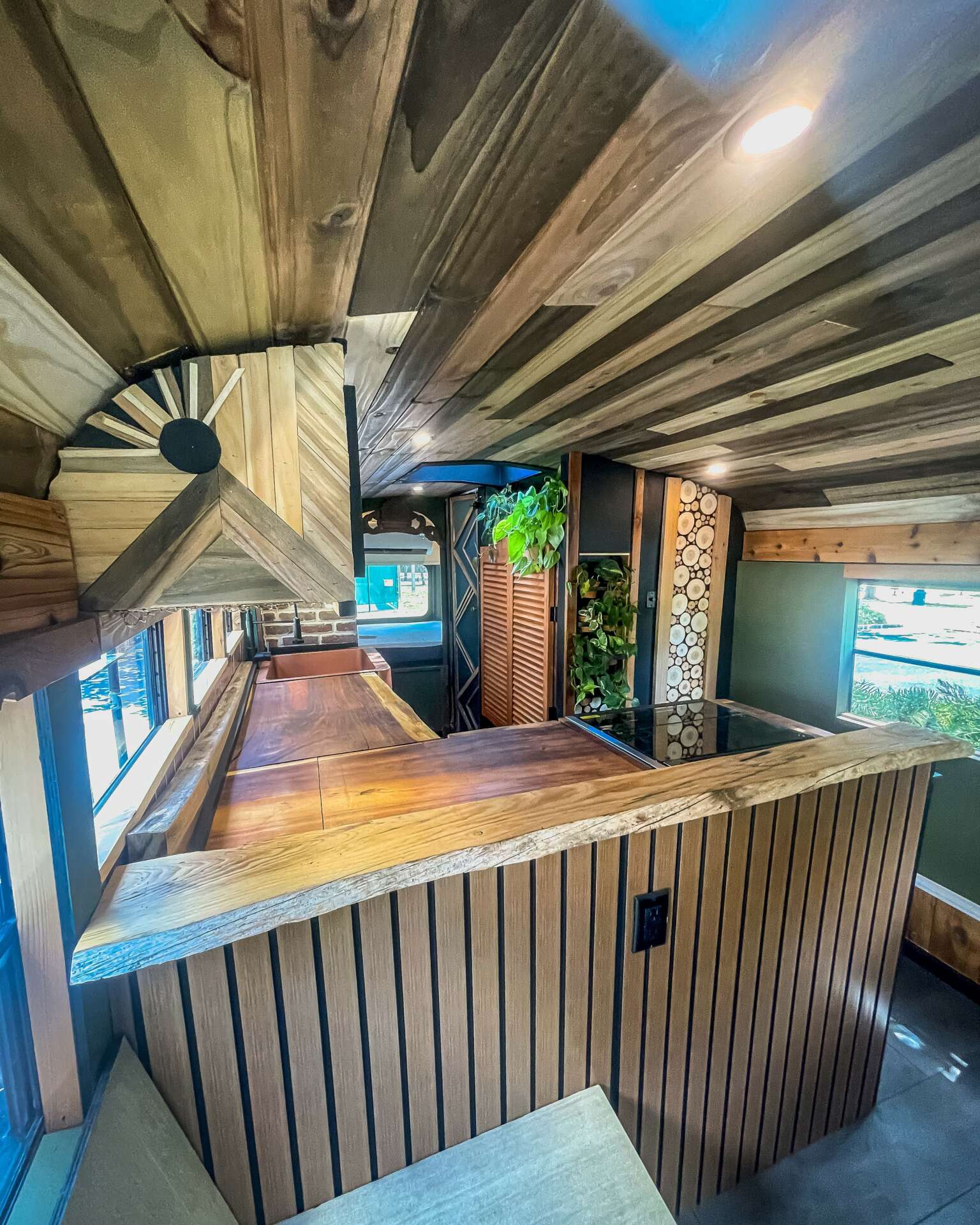 I haven’t had to spend a dime on marketing because all of my clientele is from social media. I didn’t have a following before I got on the road. I was plain Jane and didn’t post much. It wasn’t until I started sharing about my travels and what I was doing when people grabbed on and wanted to see and know more. To think that people who watched what I did were in absolute awe, I mean geese I was too, but after a while, the way that I lived just seemed normal. That didn’t make me turn my head though, I wanted to share my travels, it was a great way for me to also get more of my photography out there. In 6 months I’d grown to 5k followers and that was just the beginning. I mostly shared stories on instagram and the more I was sharing my life, the more followers I grew. By the time I started building buses, my following grew to over 20k followers. I was recognized in the “Skoolie” community. Even though there’s a ton of people that live in buses, out of the majority of us on this planet, we are really just a very small portion. Also, not a lot of people live in buses for more then a couple years. So being that I went on almost 5 years, I was well known. Over the years, people knew me as a plant eutyhiest and someone who loves to use live edge. I love using reclaimed wood, it’s like brining nature in. Even though every single one of my builds is different and unique, I use plants and reclaimed wood in every single one of my builds. I incorporate me and my love for design and nature. It’s easy to walk into any of my builds and know it was one of mine. My attention to detail and my artistic “out of the box” ideas makes my business and I different than any other bus conversion companies.