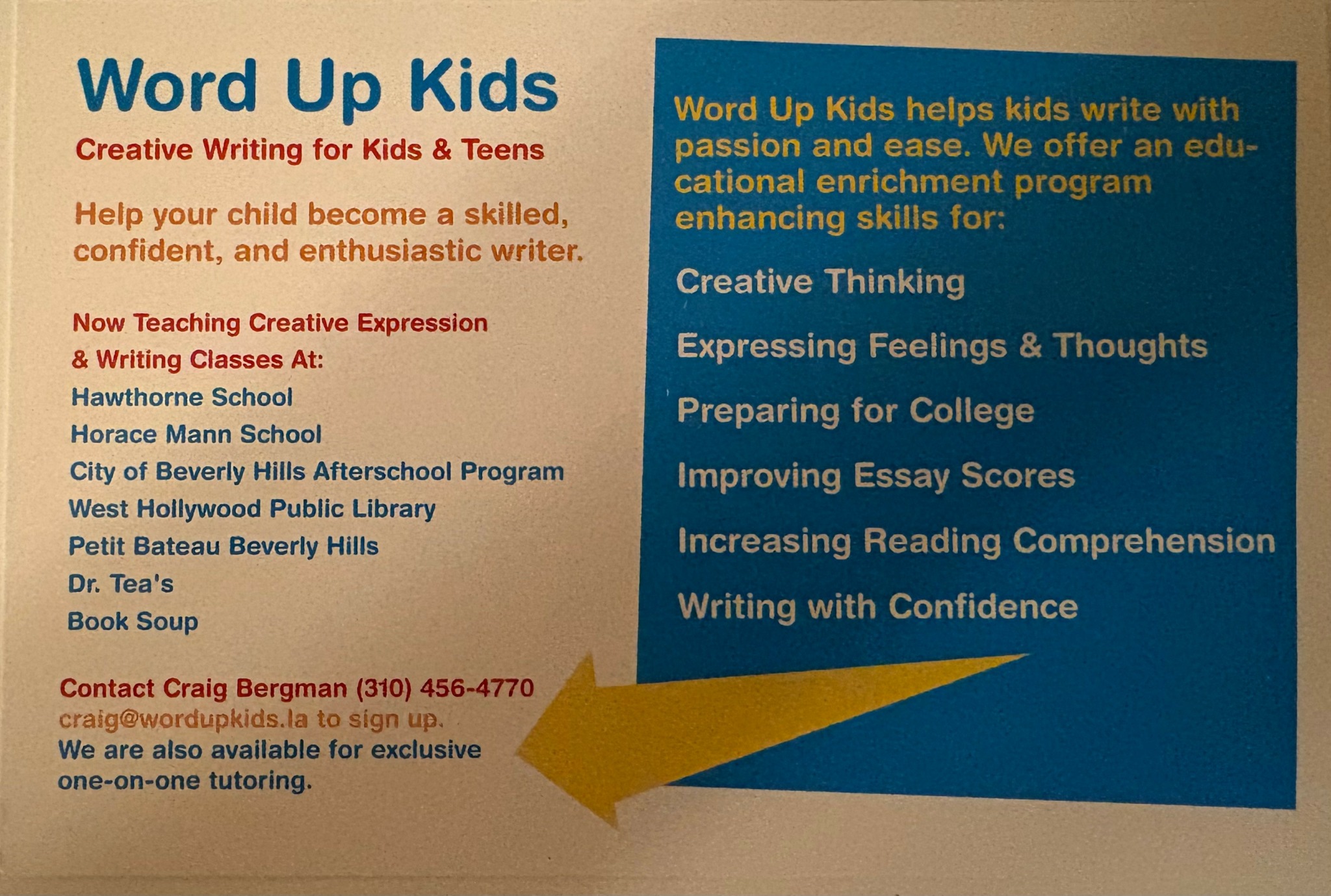 I’m Craig Bergman, founder and CEO of Word Up Kids, a writing and wellness company that helps people heal and grow through the power of writing. Originally launched as a writing enrichment program for children, Word Up Kids has since expanded into a multi-faceted organization that serves adults, schools, and rehabilitation centers.