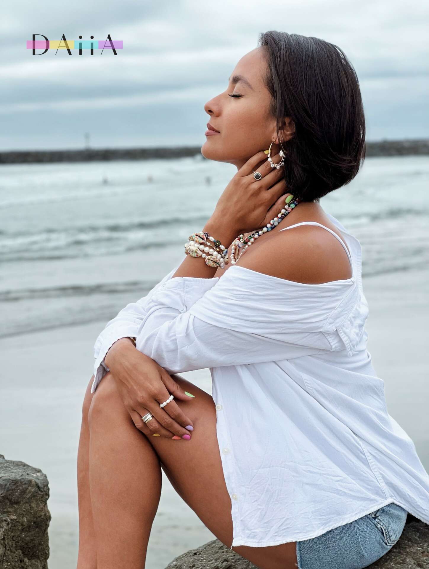 Hello nice to cyber meet you! My name is Dalia and I am the owner and designer of an online jewelry shop named DAiiA. I am based out of San Diego (Ocean Beach), CA. My brand’s name came about as a variation of my name. I changed the ii’s to honor my astrological sign Gemini. The double “ii” represent the twin stars in the constellation of Gemini. DAiiA is a mixture of elements from nature and spirituality. Some of my main characters are materials like seashells and pearls and on the other spectrum I mix in my spirituality such as evil eyes and stones/crystals with Metaphysical Properties.