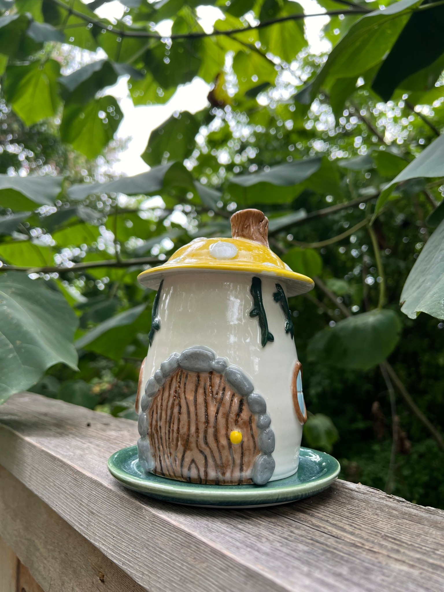 My brand and my designs are all about whimsy. I love fairies, fantasy, and renaissance festivals. I use that as inspiration for my designs. I have a series of fairies and matching mushroom house enamel pins. Once I started improving in my pottery skills, I started translating those same mushroom house designs into jars, luminaries, and incense burners. I want to provide fun items for your home that give the vibe of a hobbit home. So many commercial items are clean and modern, but I provide unique cozy ceramics you can’t find in a traditional store.