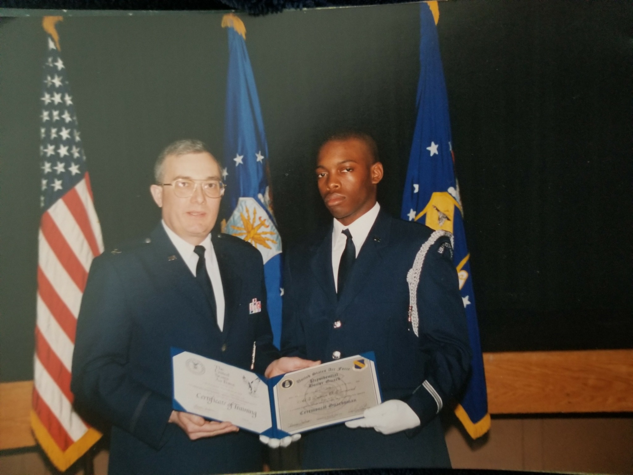 I am an Air Force disabled veteran. I served for 22 months and got hurt. I was a proud member of the Air Force Honor Guard, but we call it the Presidential Honor Guard. It gives it a little more razzle dazzle. I used to bury veterans at Arlington National Cemetary. My other job was to do customs and protocol for various ceremonies for the Air Force. I even did a little work in the Pentagon during the 50th anniversary of the Air Force.