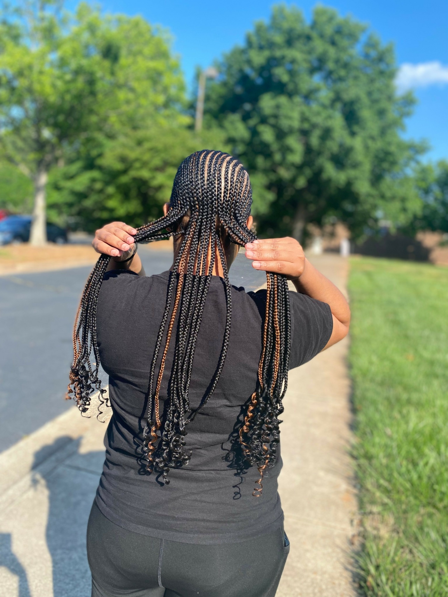 I’m skilled in a variety of braiding styles—like crochet braids, cornrows, twists, knotless braids, feed-ins, and more—and I adapt my work based on face shape, hair health, lifestyle, and trends. Whether I’m working with children, adults, or first-timers, I create a calm, welcoming experience that’s equal parts styling session and self-care ritual.