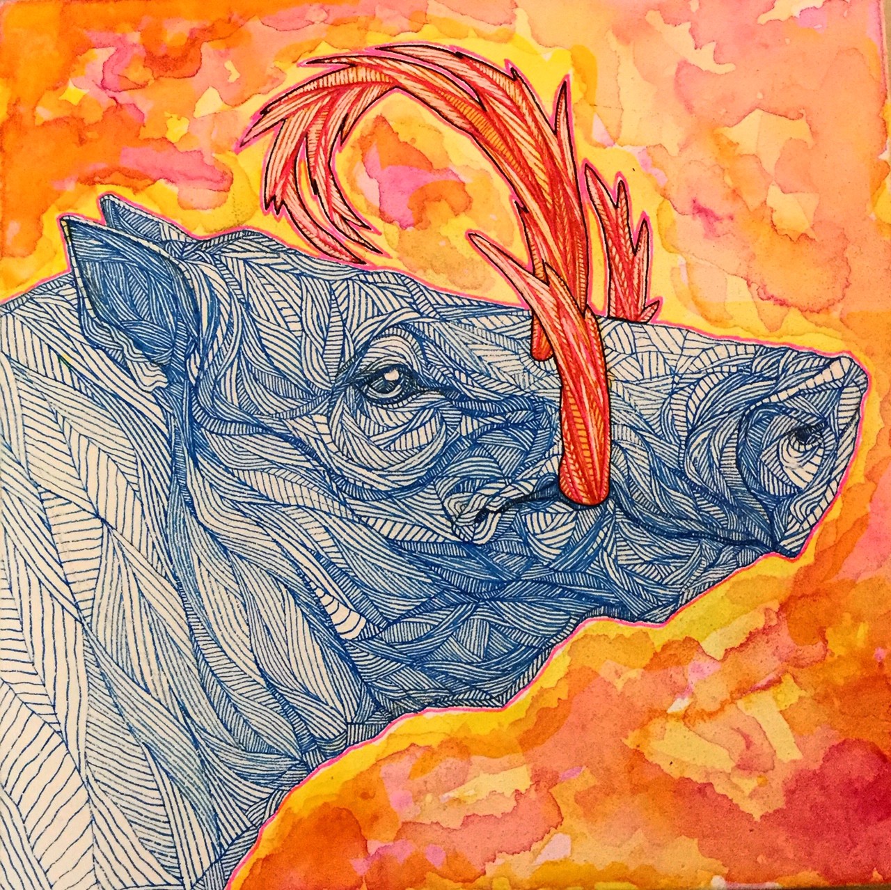 As far back as I can remember I have always been drawing. I went to Rocky Mountain College of Art and Design as an illustration major then transferred to the sculpting department where they had chainsaws and welders. There I learned to add different materials into my illustrations and sculptures – resins, wood, mold-making. This led me a down a storytelling path into stage performance with OFM featuring themes of tyranny and using fake blood effects, monster latex outfits, fight choreography and rolling that into horror comics and films. In recent years I have simplified that back into mural work using saturations of lines.