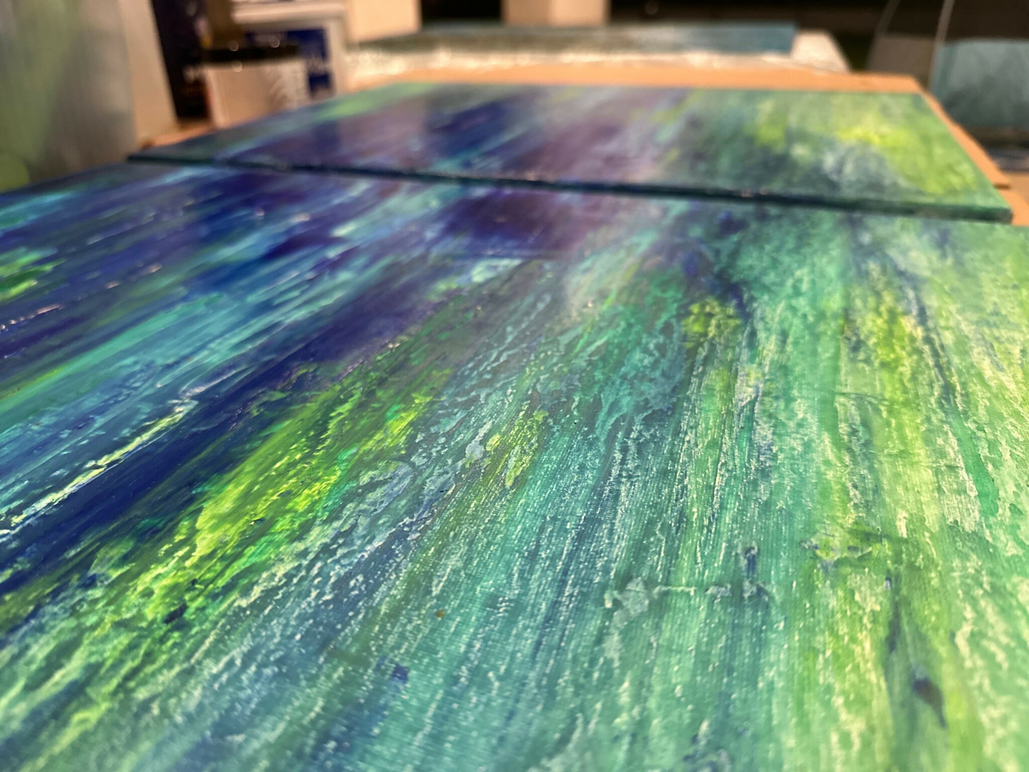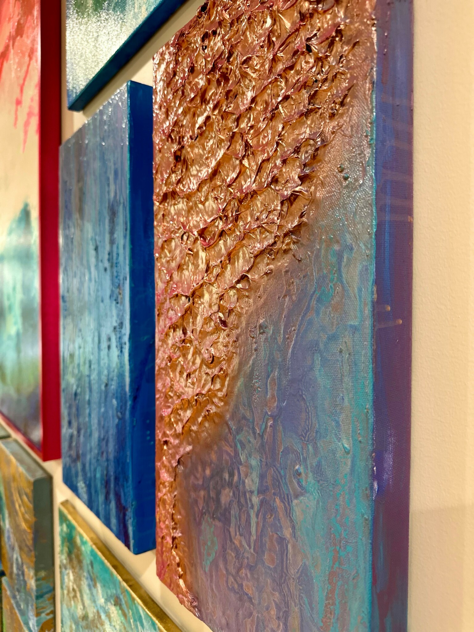 As an abstract painter, each of my pieces is highly expressive and personal to me, but some do stand out more than others, particularly those that helped me through emotionally turbulent moments in my life. I recall one of the first times when painting soothed my anxiety ahead of a serious surgery. I just started painting the day before my surgery and it ended up being the best thing for me. I went in calmer and more clear headed for it.