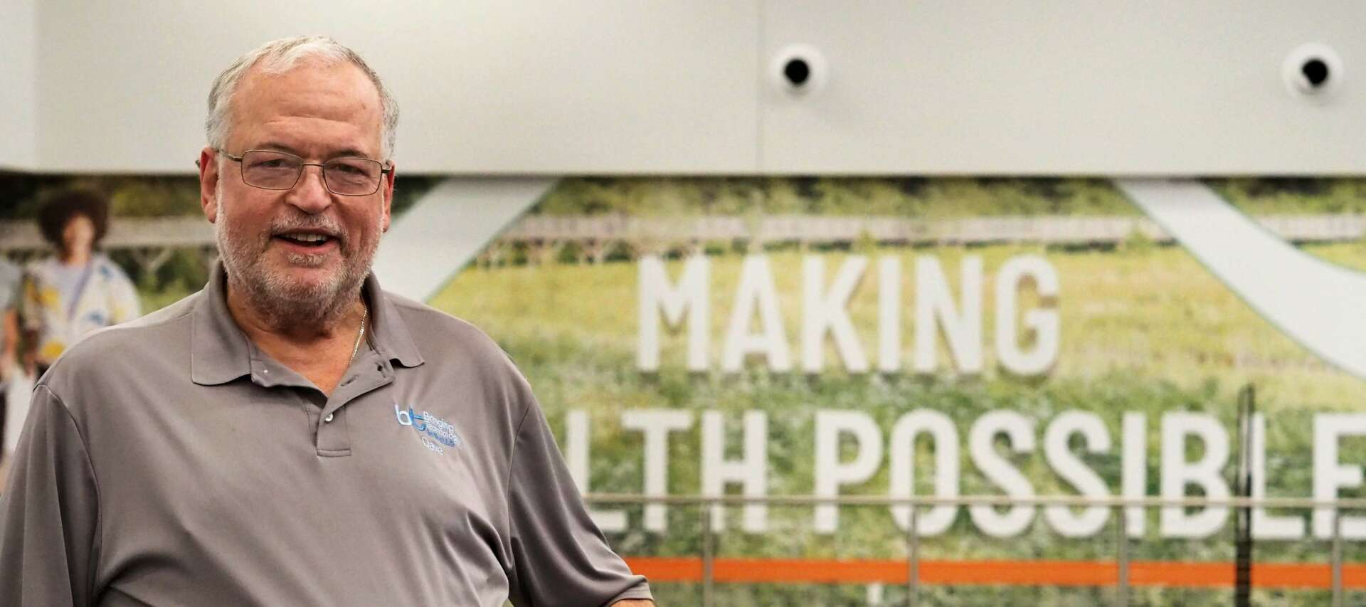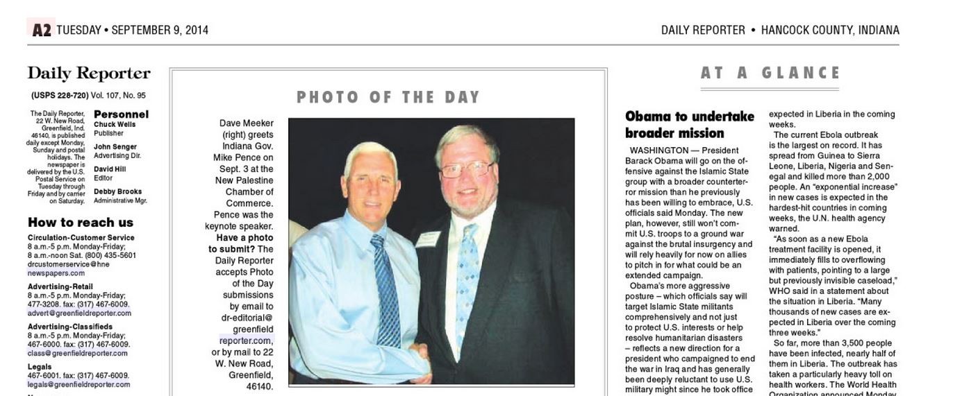 Updated profile pic with green shirt: Photo by Jennifer Meeker at the Hancock Health New Palestine Wellness Center Each photo has significance from mentoring at YMCA Camp Eberhart, Women in Business supporter, photo of my wife, Connie, in front of the Wolf Den at YMCA Camp Eberhart, picture with the New Palestine Summerfest committee showing community, etc.
