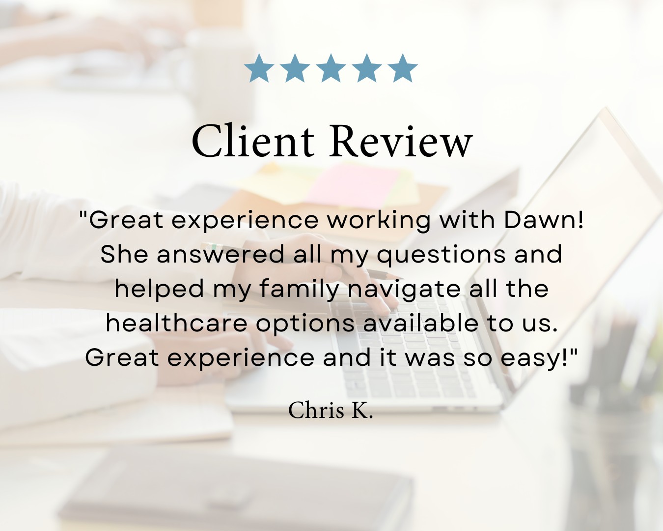 I have focused solely on health and life insurance since 2013. I worked for a large agency in town and built an amazing book of business, many of which have become friends.