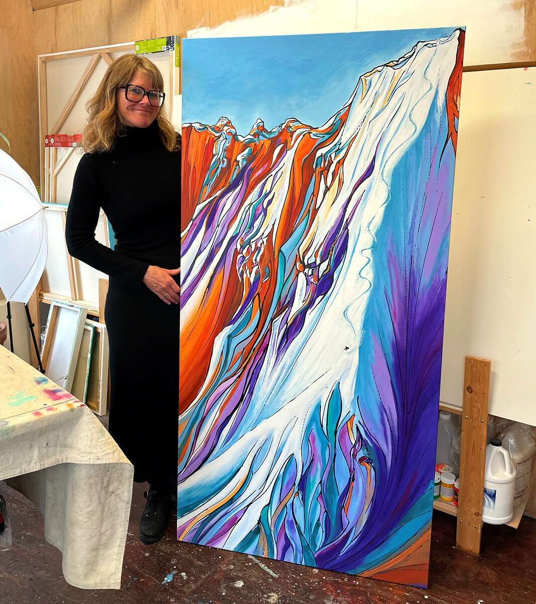 Initially inspired by water, I began incorporating swirls into my artwork, a motif that has since evolved into an abstract element present throughout my pieces. My subject matter is diverse, reflecting the beauty of my surroundings, from animals and mountains to activities like backcountry skiing and surfing, as well as serene landscapes.