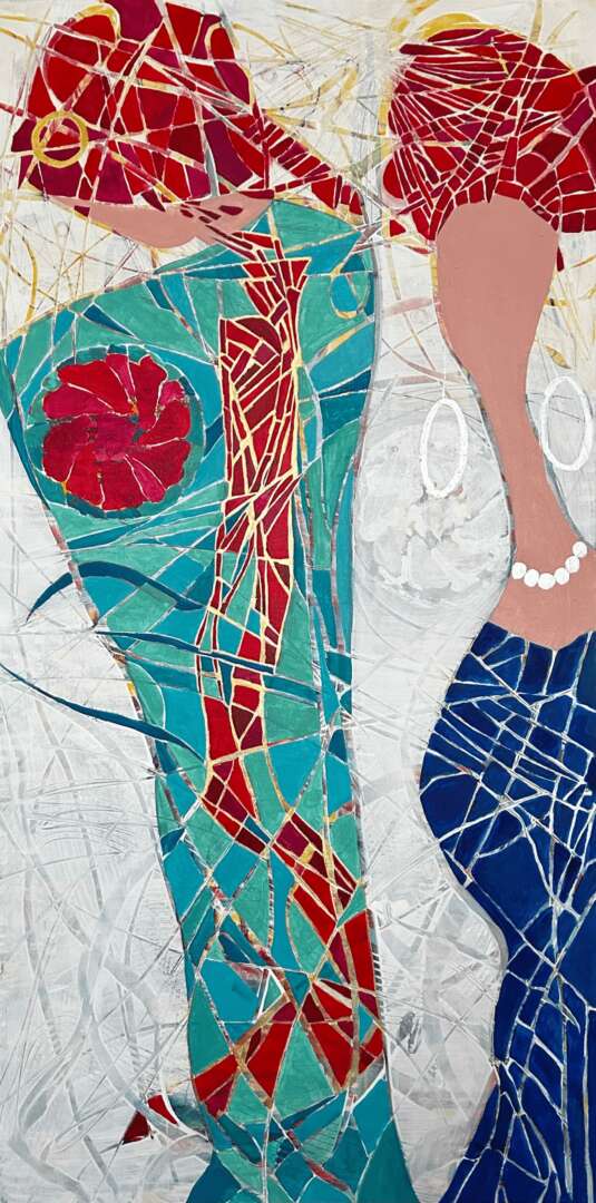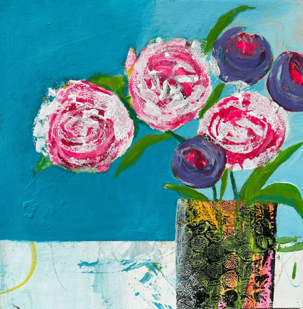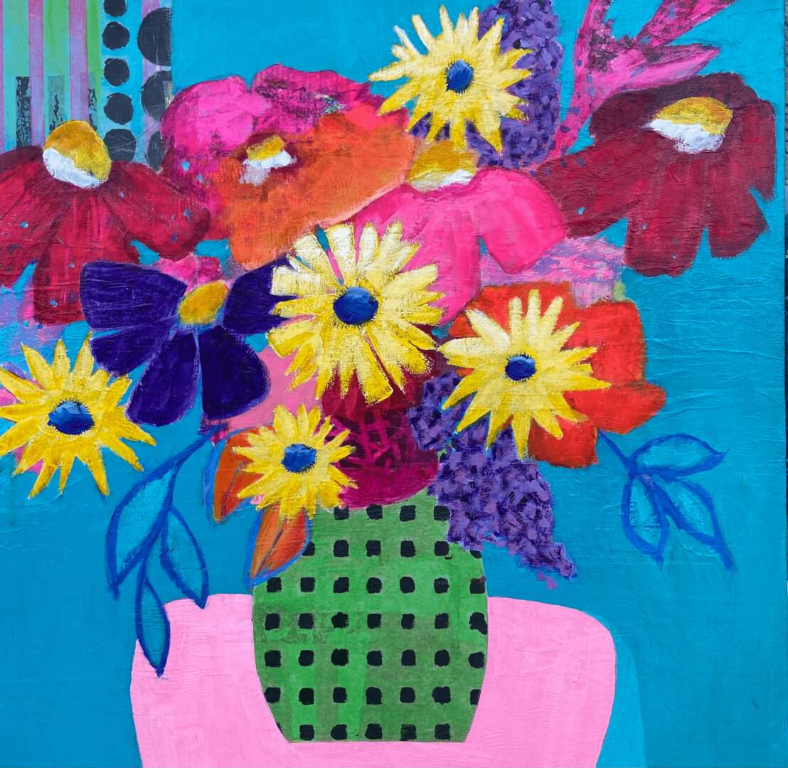 I started taking the occasional painting course over 50 years ago and only dabbled here and there. Around 2002 I became more interested in painting and took lessons in watercolour. That led to lessons in acrylics because I was drawn to the vibrant bold colours. It started with realism until I realized how it was such a perfectionistic practice – I wanted to feel freer. I was fortunate enough to attend a 4 day workshop that encouraged just that and it opened a whole new world. Around this time I retired which gave me more free time to explore and practice. I was fortunate to have my work accepted into two galleries. At that point I became bored with what I was painting and felt no direction. I quit painting for 6 years and didn’t see myself returning to it. During covid I took an online 2 month abstract course and fell in love with it. I learned to play and experiment with no plan. It was liberating! It fit with who I am – an intuitive painter.