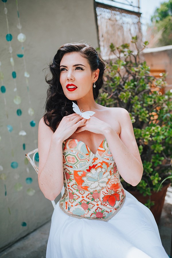 Interestingly I never stopped making bustiers, a category that continues today and is the basis of my special occasion and wedding line. My bustiers are likely what got me labeled as the “sexy eco designer” as journalists called me in the beginning of an incredible amount of press coverage. My bustiers have been worn by Rihanna in her video “Unfaithful”, as well as Pink, Sharon Stone, Christina Aguilera, Gwen Stefani, and many more celebrities. They are also pivotal pieces to the costume design I did for the burlesque troupe (before they were a singing group) Pussycat Dolls.