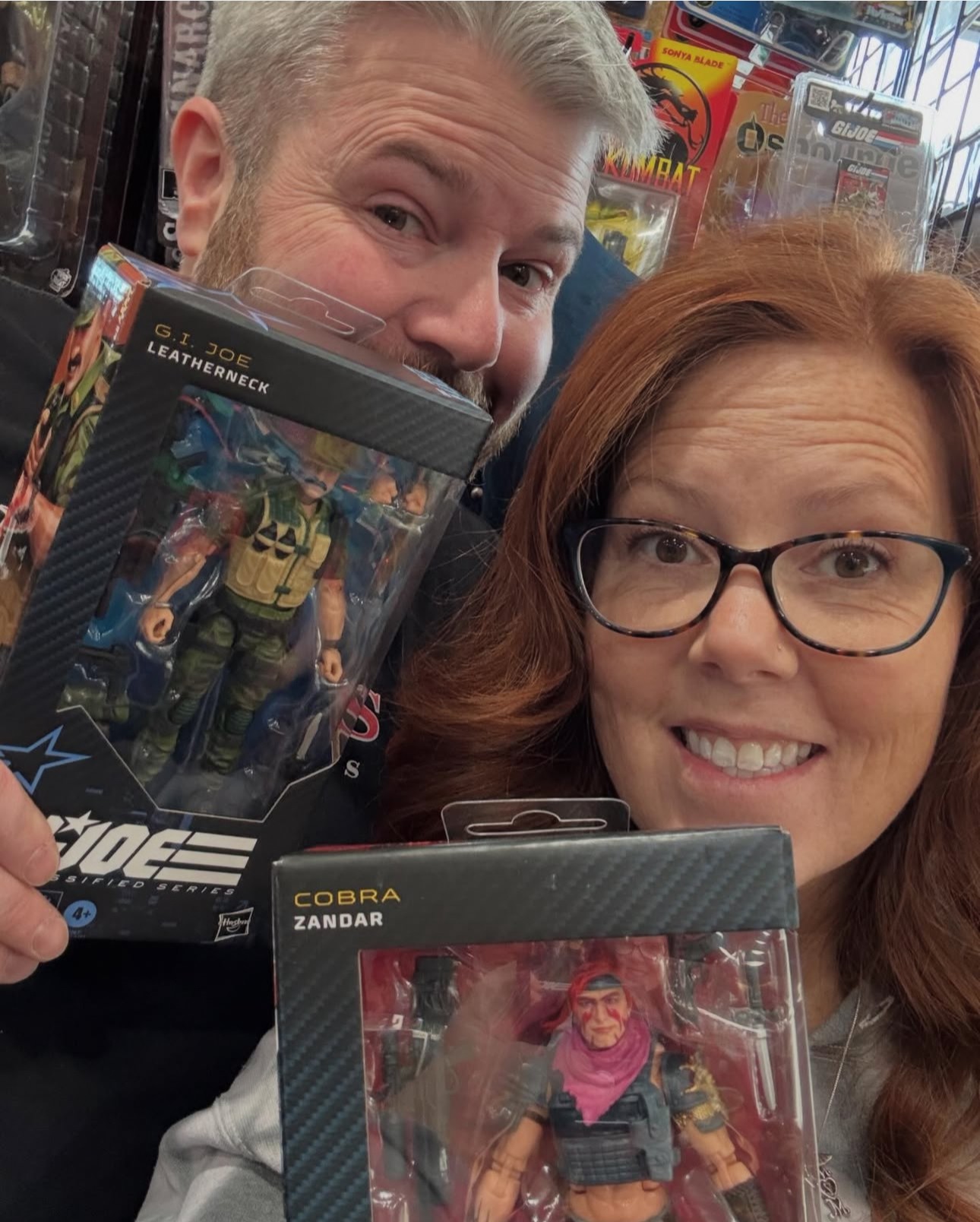 We’re a husband and wife duo – truly a family business and we chose our nicknames for the shop because WE are the shop; it’s not “just a toy store… it’s an experience!” Our journey started in the most unexpected of ways: we were raising funds to grow our family through adoption. Some of John’s childhood friends donated a duffle bag of Magic: The Gathering cards to help. We listed them online and realized pretty quickly—we loved doing this. That little spark led to more collecting, more reselling, and eventually, the creation of Sarge & Red’s. What began as a way to fund our dream of becoming parents grew into a full-time passion rooted in retro toys, pop culture, and meaningful connection.