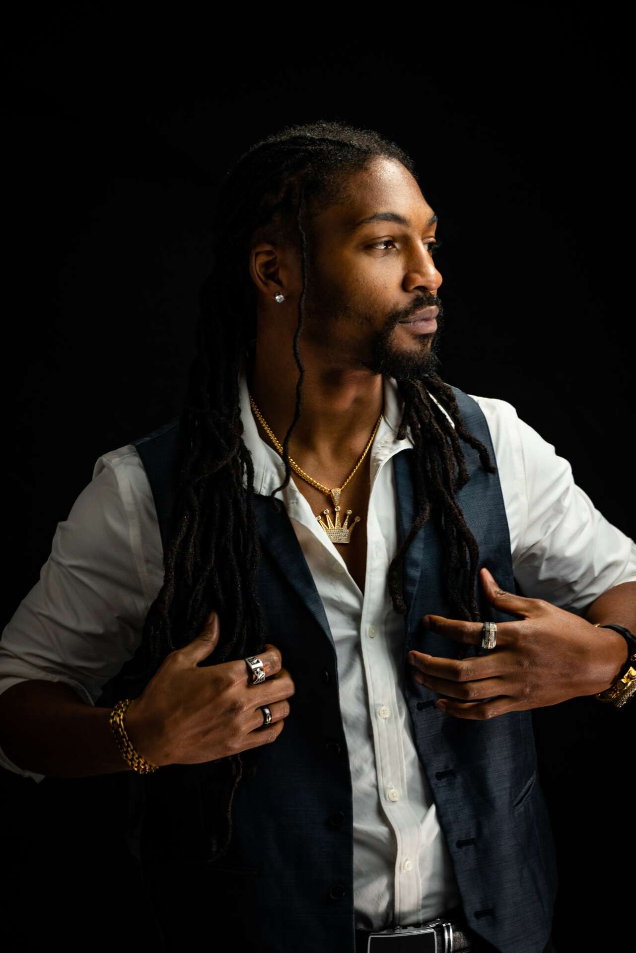 I also believe having those experiences in life whether it was homelessness or trying to coparent while still finding your way in a new city, gave me the lessons I needed to also become a successful actor. Life imitates art and vise versa. We love and like watching the characters we see in film or theatre because they make us feel something that’s already inside us or shows us a different pov of the world. I chose to become an actor because I wanted to see more people who looked like me on TV or even in theatre. That’s also the other reason I’ve been committed to keeping my locs in my hair. I wanted to show who I am and my capabilities regardless of looks. I love to bring the characters I play to life through my own life experiences and the many people I’ve had the pleasure to see or conversate with. Also with having anxiety and recently being considered to be on the autistic spectrum, I find a sense of relief following my passion to act. I always tell people it took a long time for me to get comfortable with compliments from others. I’ve always been the type of person that if I’m doing a good job that’s just the way it should be no need to praise me, or if I’ve helped someone I didn’t need to express it to everyone because that’s just how things should be. So with entertainment I am the same way, I just want to do my best and let you lose yourself in the moment while your imagination takes you to a world outside of yourself.
